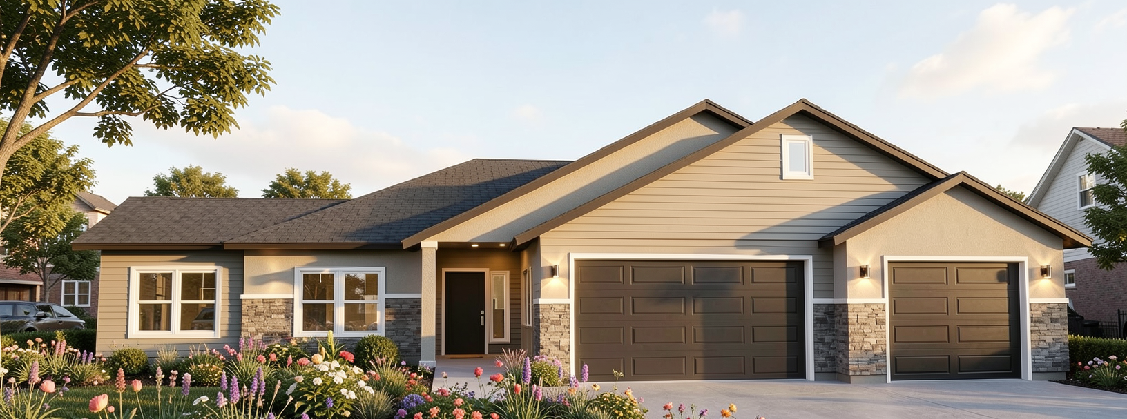 do not change the cabinets in any way preserve the exact cabinet colors materials finishes dimensions door and drawer styles hardware spacing alignment and all geometry exactly as shown do not alter the countertop shape backsplash appliances flooring lighting fixtures or wall structure only remove the construction materials clutter and mess from the scene clean the room and make it look finished and staged add a few simple tasteful home accessories appropriate for the style of the space but do not add or remove any furniture windows or architectural elements maintain the original lighting direction and realism enhance clarity and polish the photo while keeping the cabinetry and room design completely unchanged do not alter the lighting to keep the cabinet colors as they are in the image keep the white background do not add flooring just make the image realistic do not add a ceiling keep the colors as is do not add grain to the tan cabinets keep the grain on the wood tops