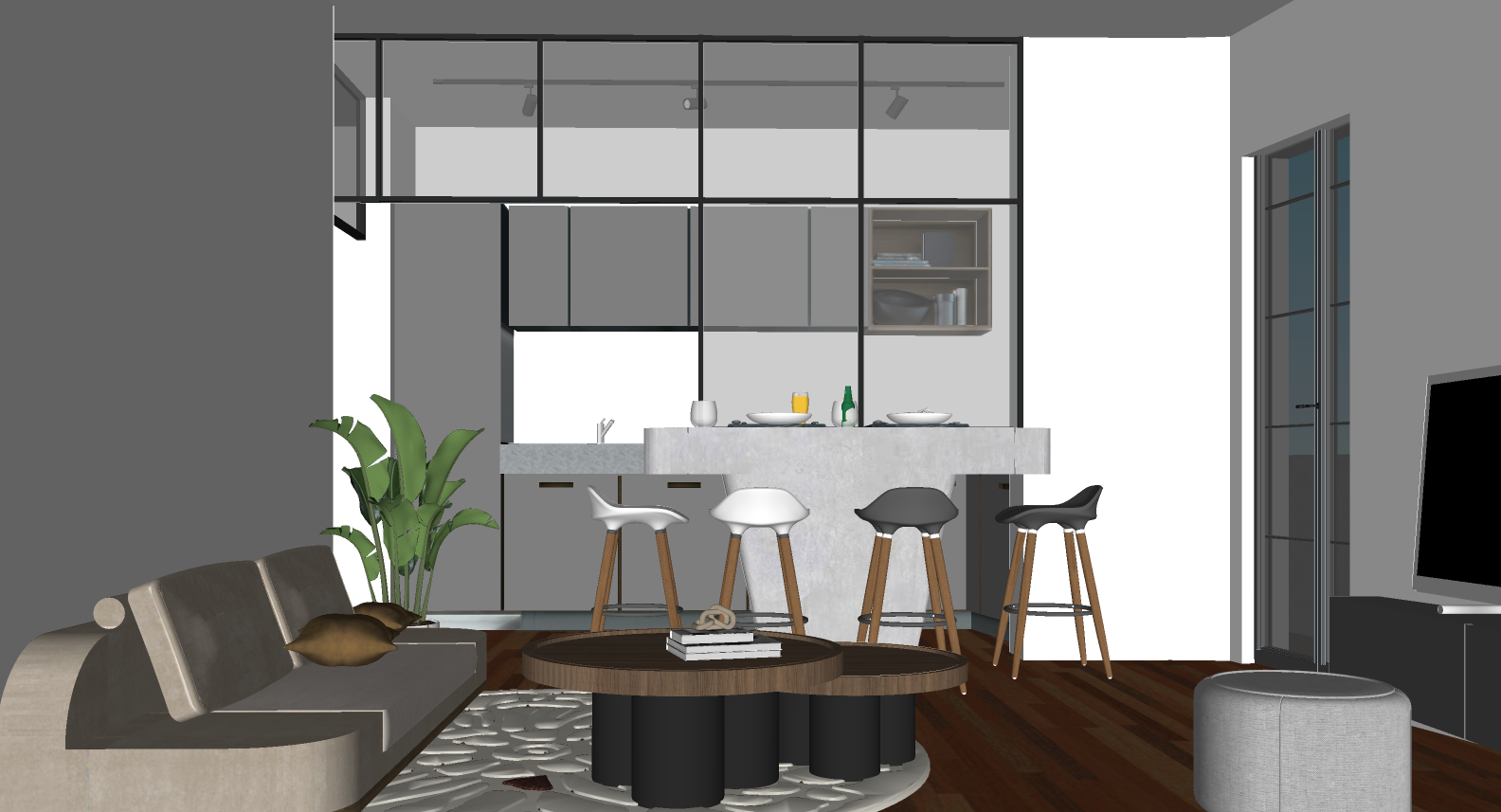 transforms the provided image into a high end photorealistic rendering with warm golden hour atmosphere soft and bright lights that keep everything in exactly the same proportions same wall finishes same materials and same spatial configuration do not move or alter the geometries of objects textures colors or furniture positions the light comes from the right the geometries and curves must be equal
