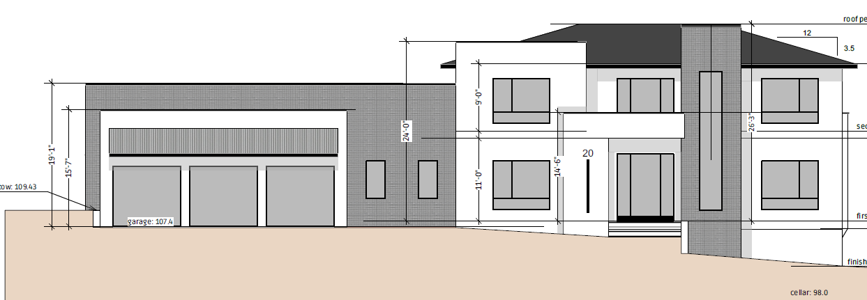 a modern two story house with a sleek contemporary design the walls are painted in a grey stucco providing a clean and modern look the garage a dark gray stucco the roof is black shingle style adding contrast and sophistication large windows with dark black frames allow an abundance of natural light the house is set on grass and modern style planting complementing the overall neutral palette the atmosphere is serene and welcoming with a touch of modern luxury garage doors will be black aluminum frame with glass windows slick horizontal frame design the look is modern and contemporary