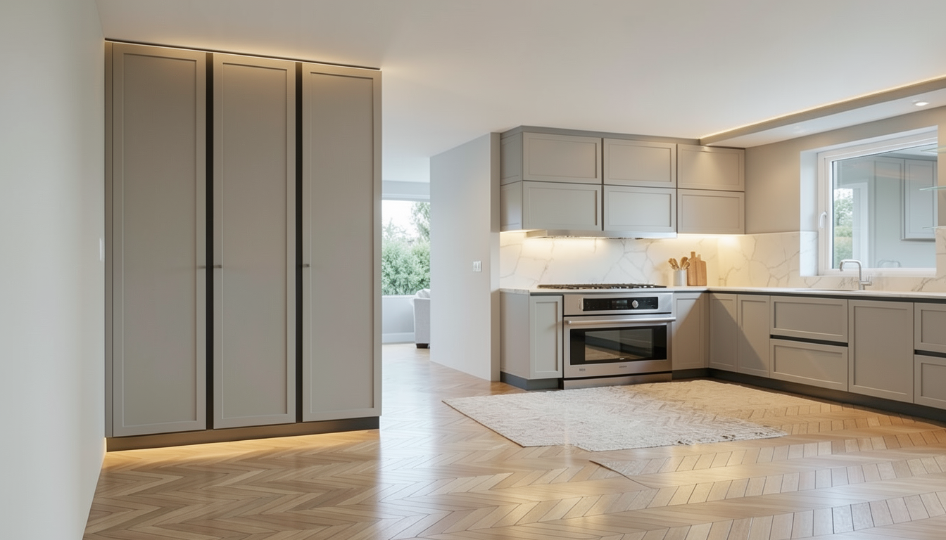 crea una imagen fotorealista en base a esta de sketchup realza texturas y la iluminacion no a adas tanta luz natural los muebles son un poquito mas oscuros cambia la tela del asiento de las sillas