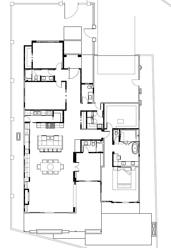 convert this floor plan into a realistic isometric 3d view of a full house show the space from an elevated angle with furniture walls and details visible white oak hardwood floor calcatta quartz countertops white beds use the same furniture as shows on the plan do not change the orientation of the floorplan