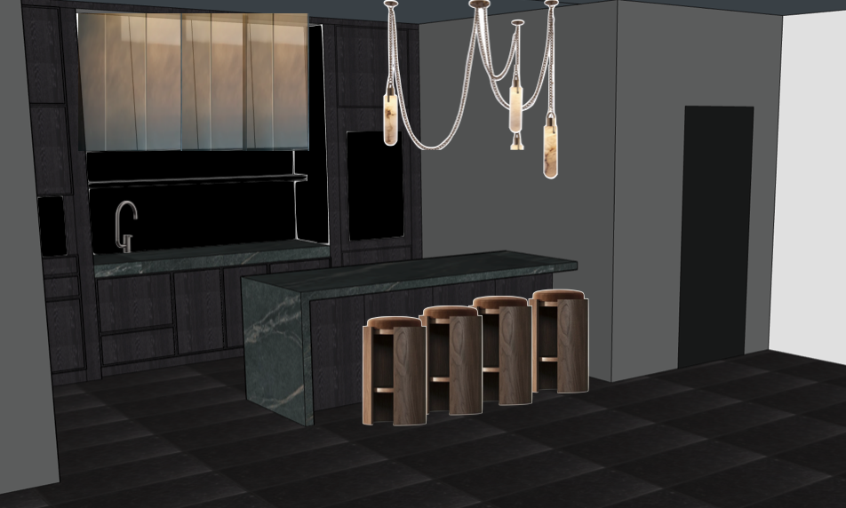 make the countertop black slate and now brown wood in the imamge