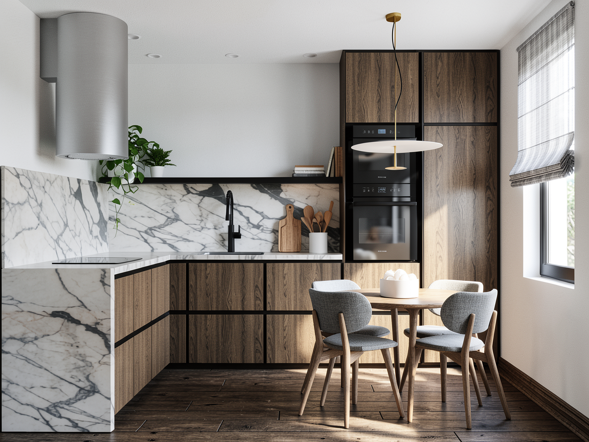 it will have a modern luxurious style with sahara colors and some dark wood tones and turquoise marble like walls