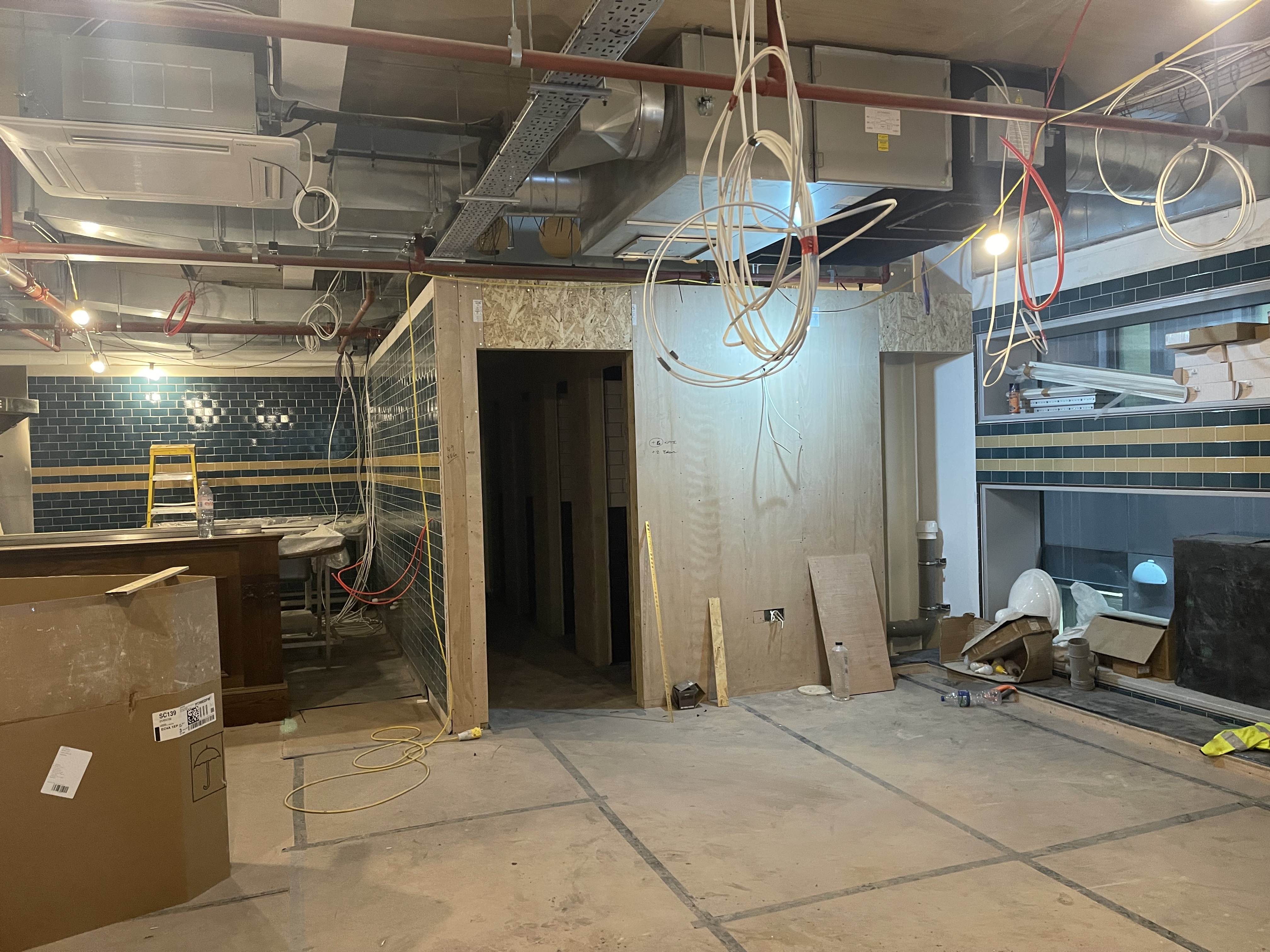 keep ceiling as is apply wood floor remove wires hanging from ceiling