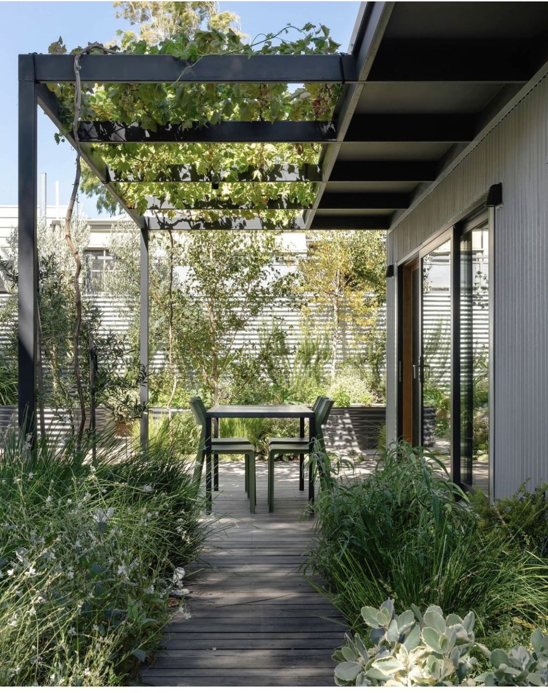 make your house and pergola more contemporary and always use plants as a backdrop