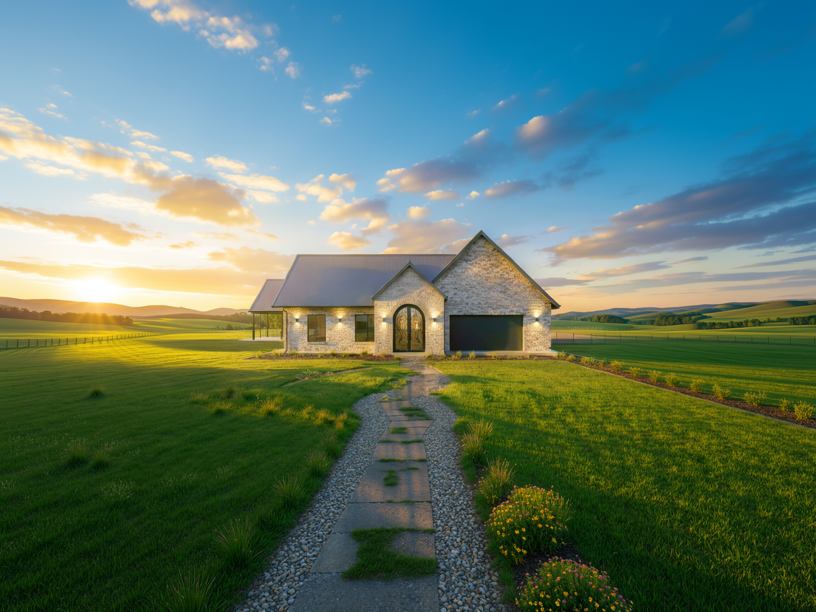 make the landscaping more well maintained add a beautiful beige stone driveway like a big circle one