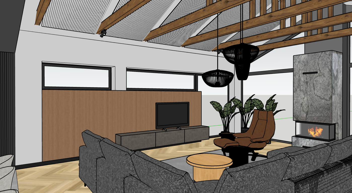 international style interior shot create a photorealistic interior visualization based strictly on the provided image do not add remove or modify any elements materials furniture or layout do not add any new windows anywhere else ensure the sunlight reflection on the glass is smooth and continuous without any grid lines or breaks maintain correct scale and proportions use physically accurate lighting with soft global illumination all lamps are turned on and emit warm light with visible light sources keep natural exposure consistent with the original image use high quality realistic textures with precise detail ensure accurate reflections and soft shadows do not apply any stylization or artistic effects the result must be strictly photorealistic and match the original scene as closely as possible architecture