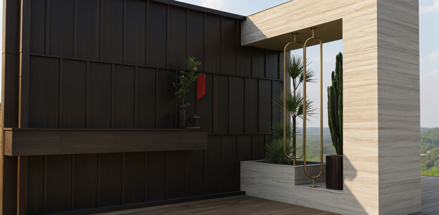 tudor revival exterior shot render a modern house exterior with a white brick facade featuring large windows with grey frames for a sleek contemporary look the roof should be a dark charcoal gray contrasting beautifully with the walls add a classic wooden front door with a warm deep brown finish surround the house with a lush green lawn and vibrant flower beds in shades of pink and purple the atmosphere should be bright and welcoming under a clear blue sky with soft fluffy white clouds sunlight should cast gentle shadows adding depth and warmth to the scene architecture