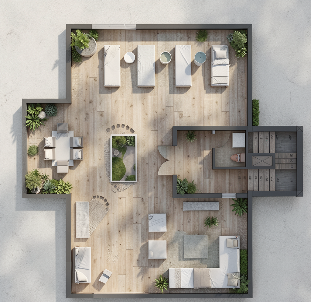exterior shot add this pickle ball court i would like it to be square with the house and centered