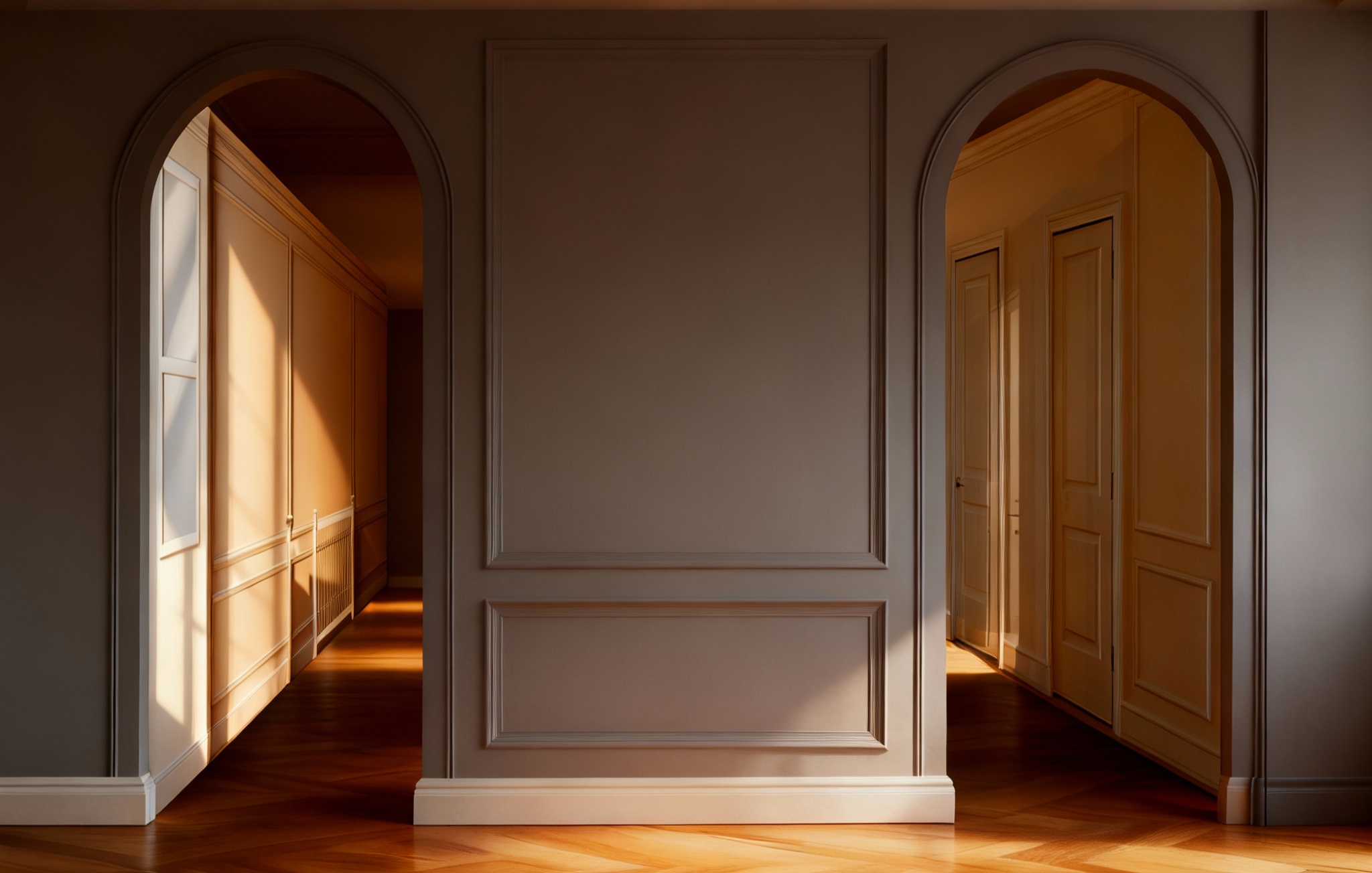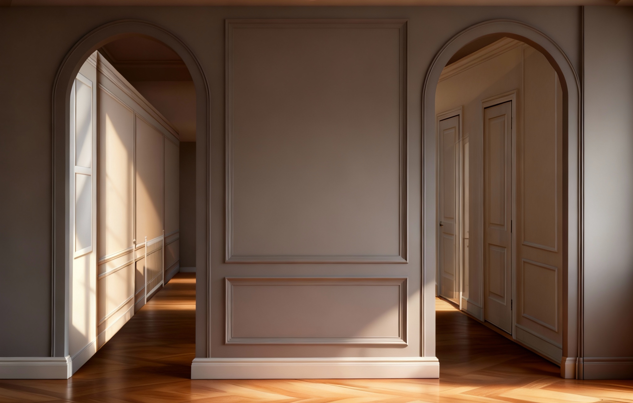 modern minimalistick vstupn hala v tepl ch pr rodn ch a svetl ch t noch na avej strane je vstavan skri a s lo n m priestorom ve iakmi na kab ty a policami na top nky celkov dizajn je elegantn funk n a vzdu n s d razom na jednoduch l nie a pr jemn atmosf ru materi ly ako svetl drevo biela farba a b ov odtiene priestor by mal p sobi priestranne a organizovane architecture