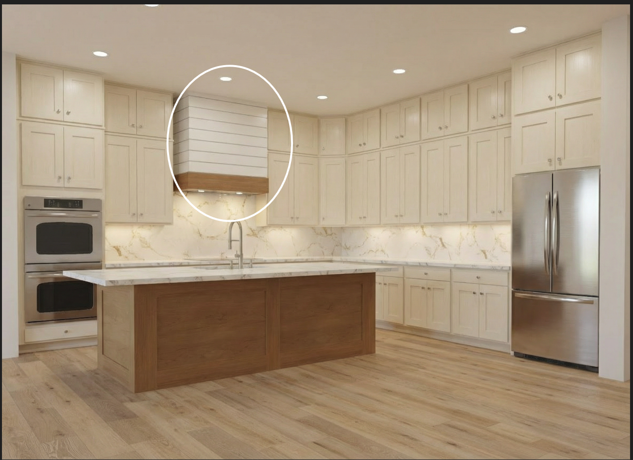 change the white ship lap on the wall off white to match the cabinet color