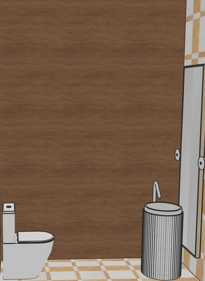 make the toilet white and the mirror behind the sink reflective
