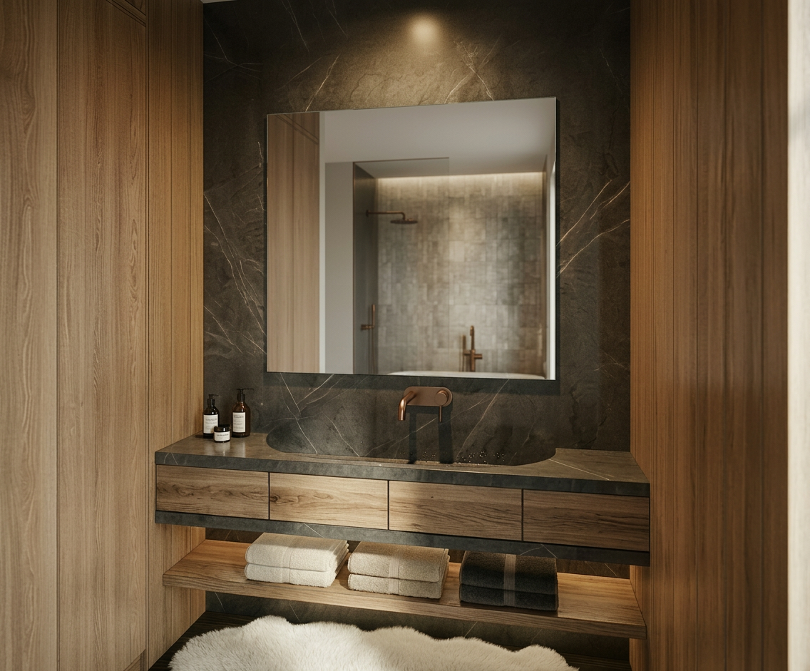 the cabinet up with glas mirror front and side