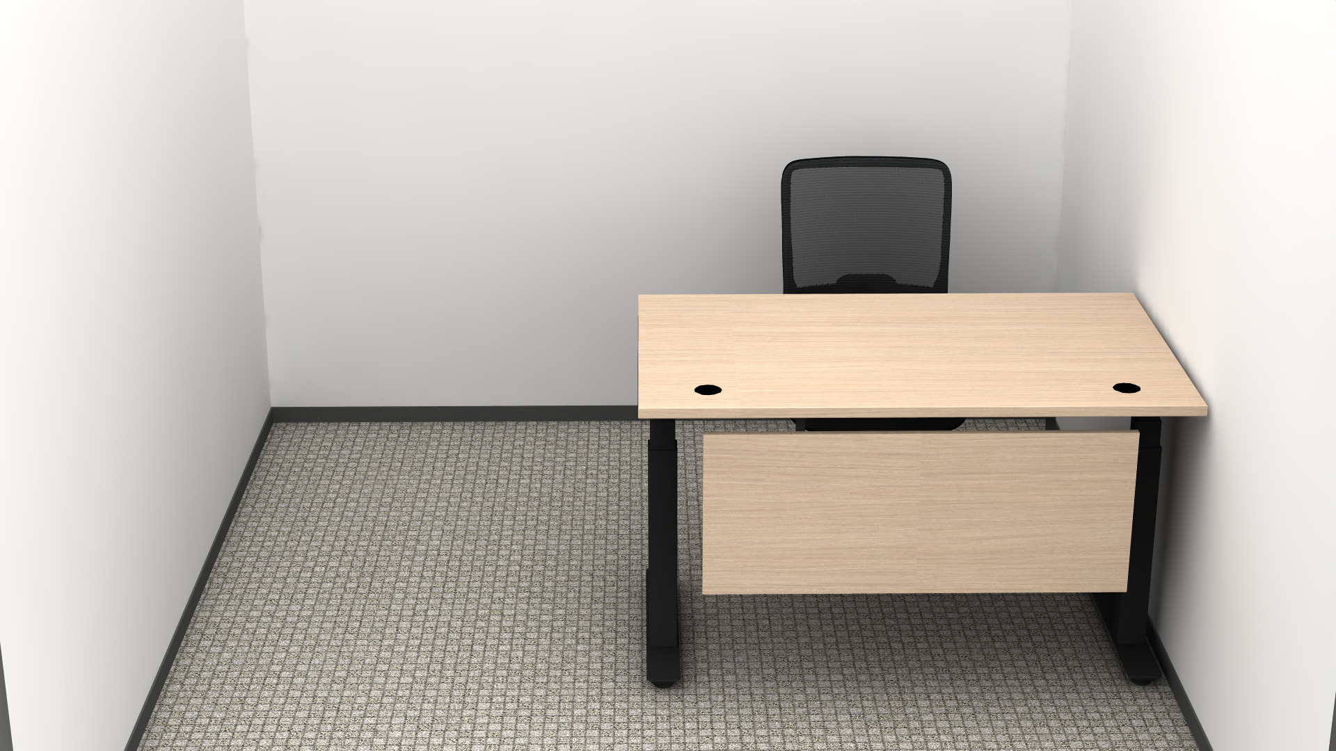 add artwork on the wall add computer and decor on the desk keep furniture the same add a plant in the corner