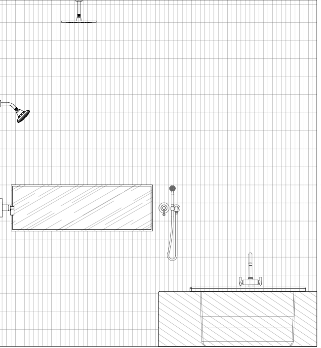 shower room with built in bathtub travertine tile walls with beautiful taj mahal stone niche and brass transitional style fixtures day time warm glow