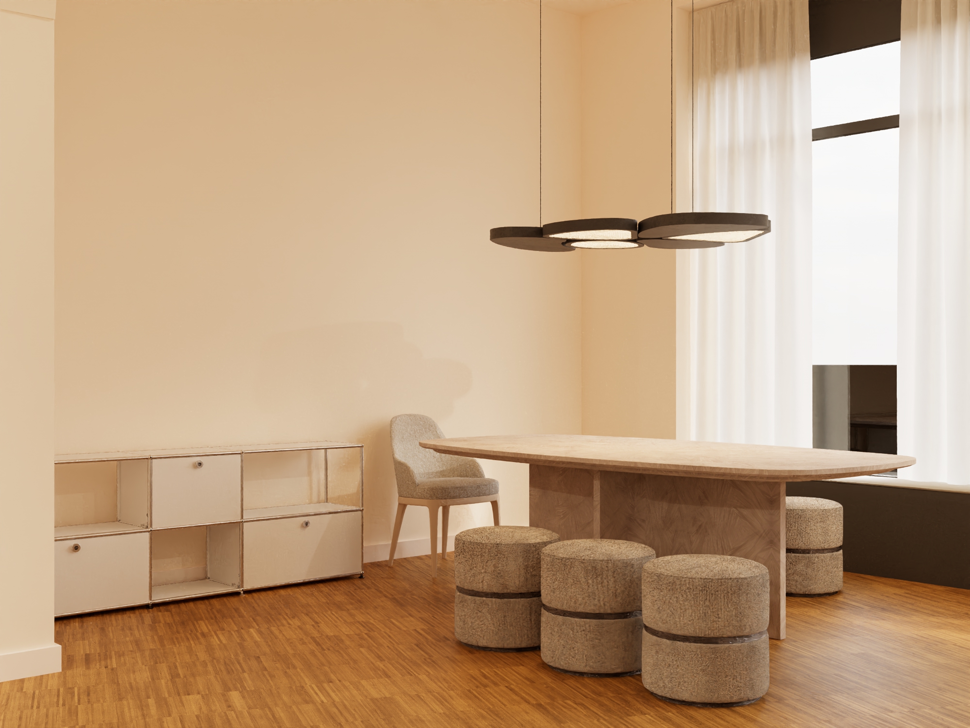 photorealistic image of an interior maintaining exactly unchanged furnishings arrangement composition and original colors without any modification to layout perspective or objects present the scene must be identical to the original in every detail through the window there is a view of a milanese urban street with a typical milan building positioned in front and parallel to the window glass the street must be completely empty without people cars or disturbing elements the exterior must be coherent realistic and slightly less dominant than the interior the overall atmosphere must be bright clean and welcoming with soft and diffused natural lighting well balanced colors daylight delicate shadows and high photographic realism high quality photorealistic style sharp details realistic materials professional photographic rendering full hd resolution
