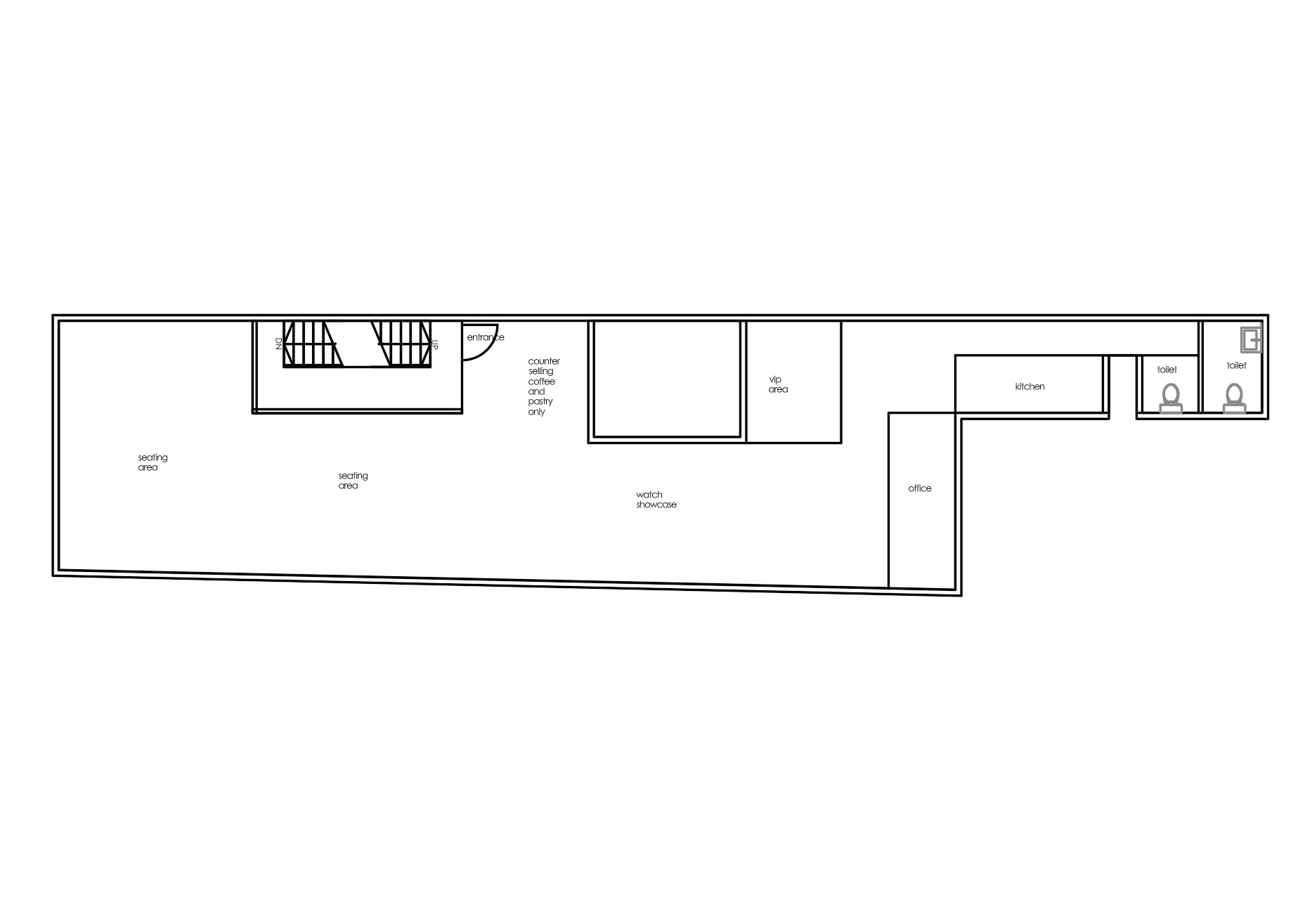 this is a f b selling basic coffee and bread similar to arabica cafe they also have 4 6 display cabinet selling watches can do a layout for me