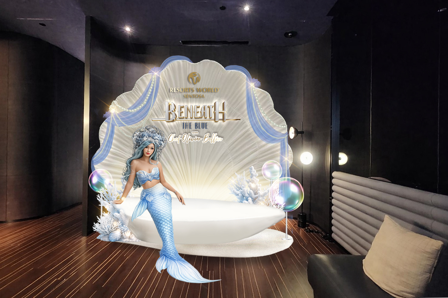 add ambient lighting of restraint with aquarium tank warm color light with a bit of blue highlight