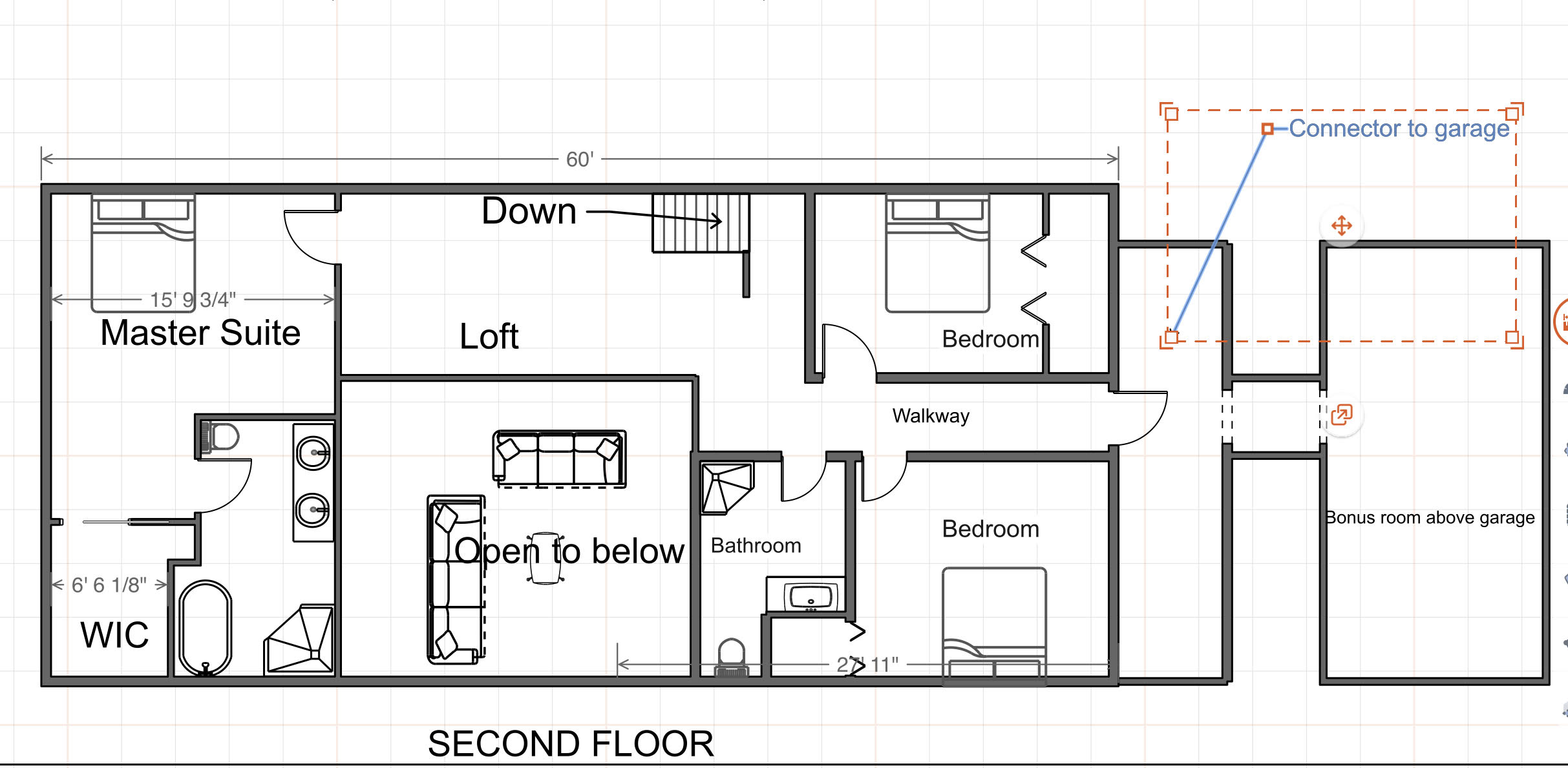 convert this floor plan into a realistic isometric 3d view of a full house show the space from an elevated angle with furniture walls and details visible modern barndominium make sure doorways are included and lots of natural light large windows bonus room above the garage this is the second floor keep rooms and furnishings true to drawing use the same furniture as shows on the plan do not change the orientation of the floorplan