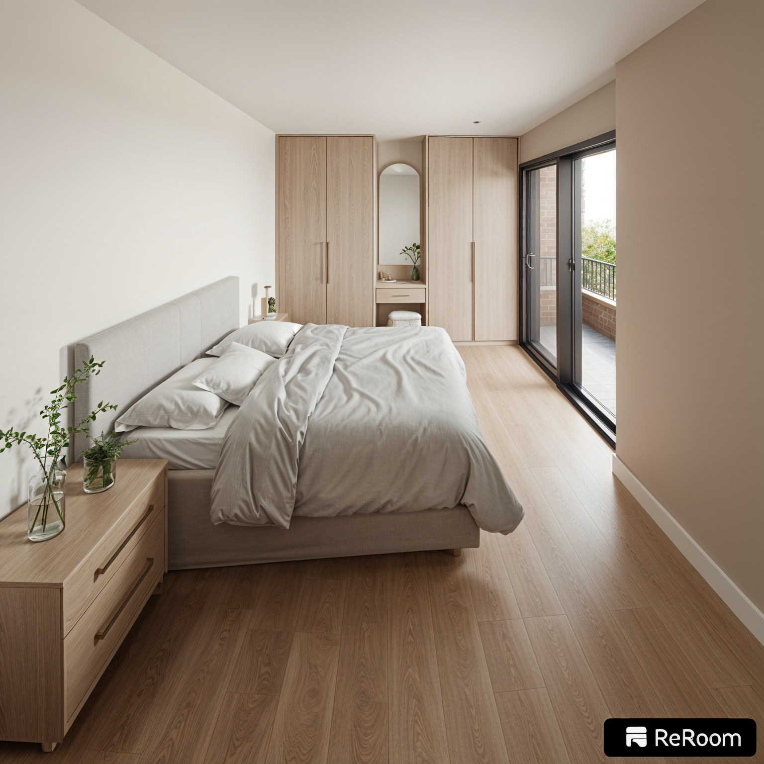 light brown flat tile roof dark brown fascia and soffit dark brown window frames dark brown frame entry door wood grain garage doors with windows grass yard dappled brown large square paver driveway and walk to entry driveway to edge of road bronze wall lights each side of garage doors and entry smooth white walls large dappled dark brown tiles over entry and small garage door light brown stone each side of small garage light brown stone each side of entry to match small garage door stone tropical landscape thin tall wall lights each side of small garage thin tall wall lights each side of entry hip roof over large garage door
