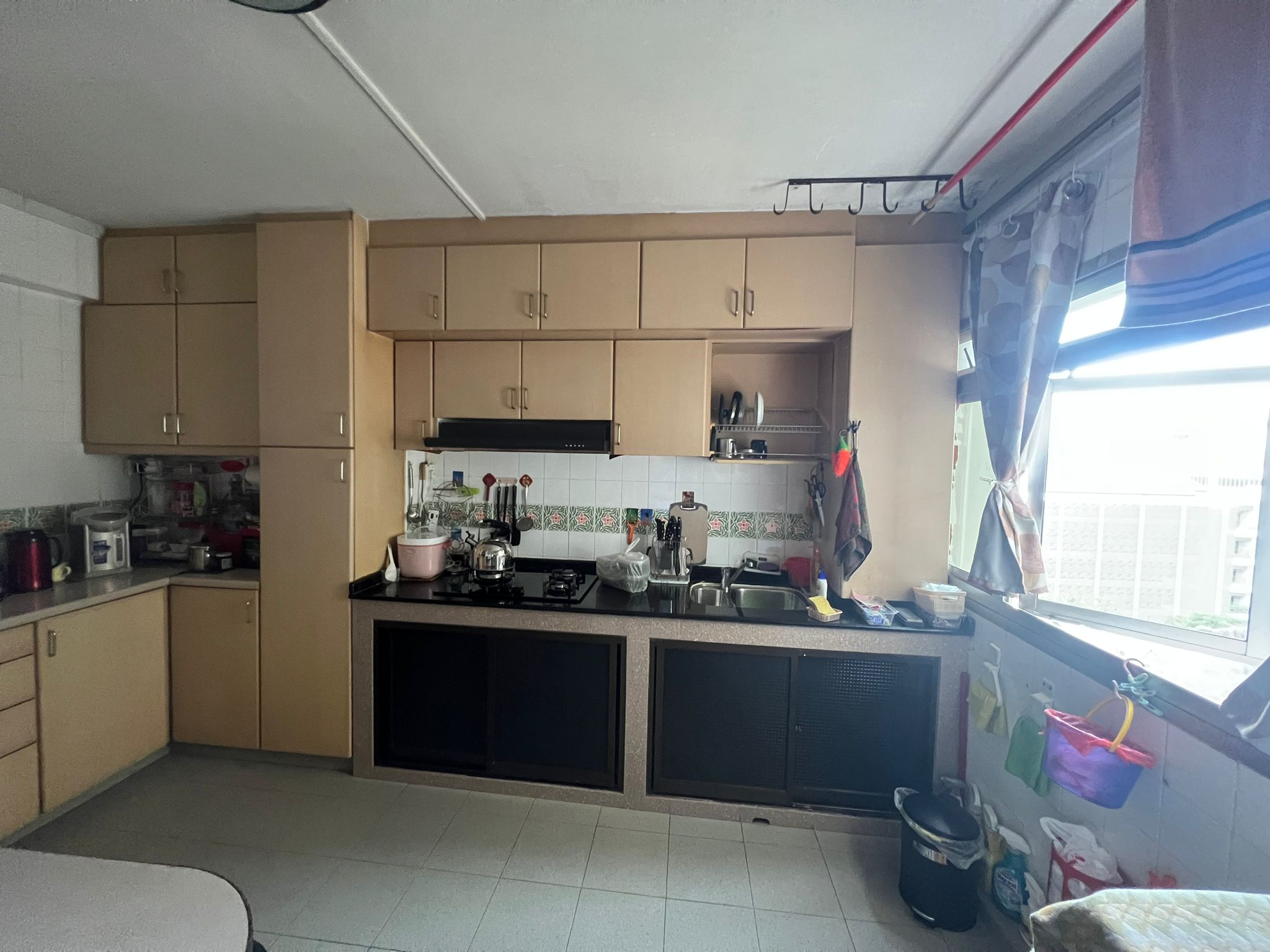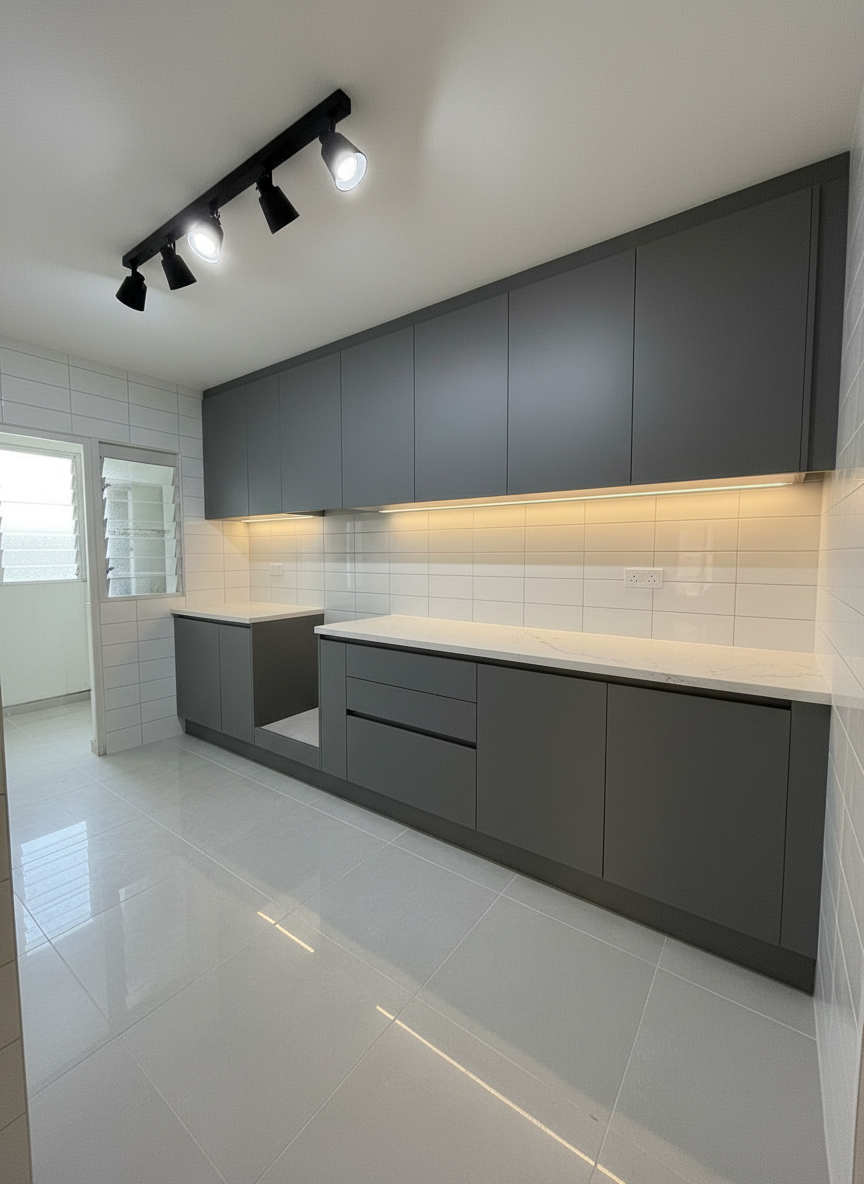 clean this up change this into a modern kitchen keep the window and walls the same