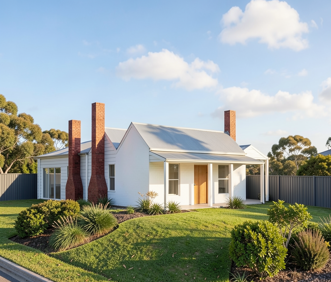 make the white brick on the front of the house the same as the red brick on the chimneys