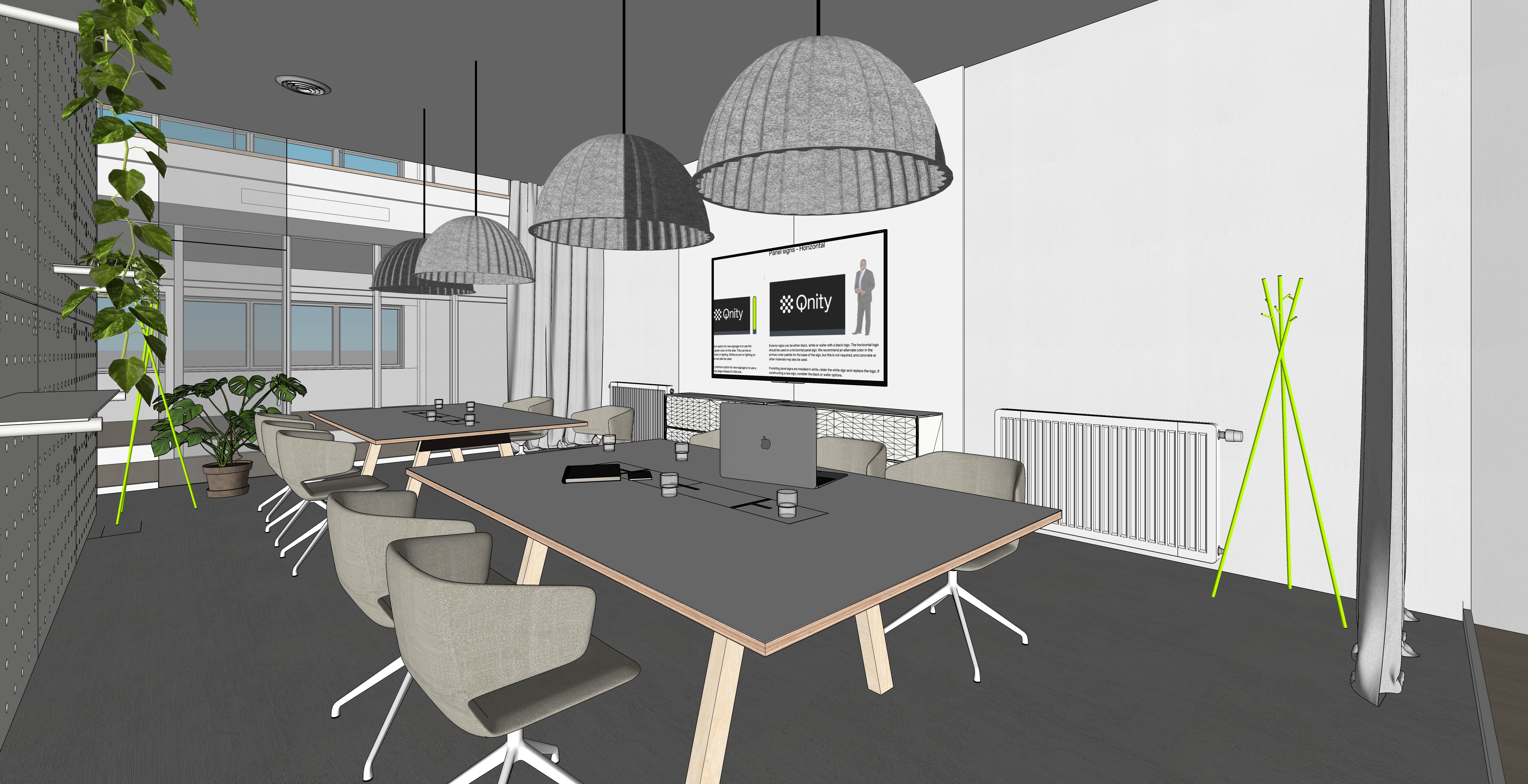 photorealistic visualizations of office spaces walls transparent glass or natural plaster white technical floor gray carpet