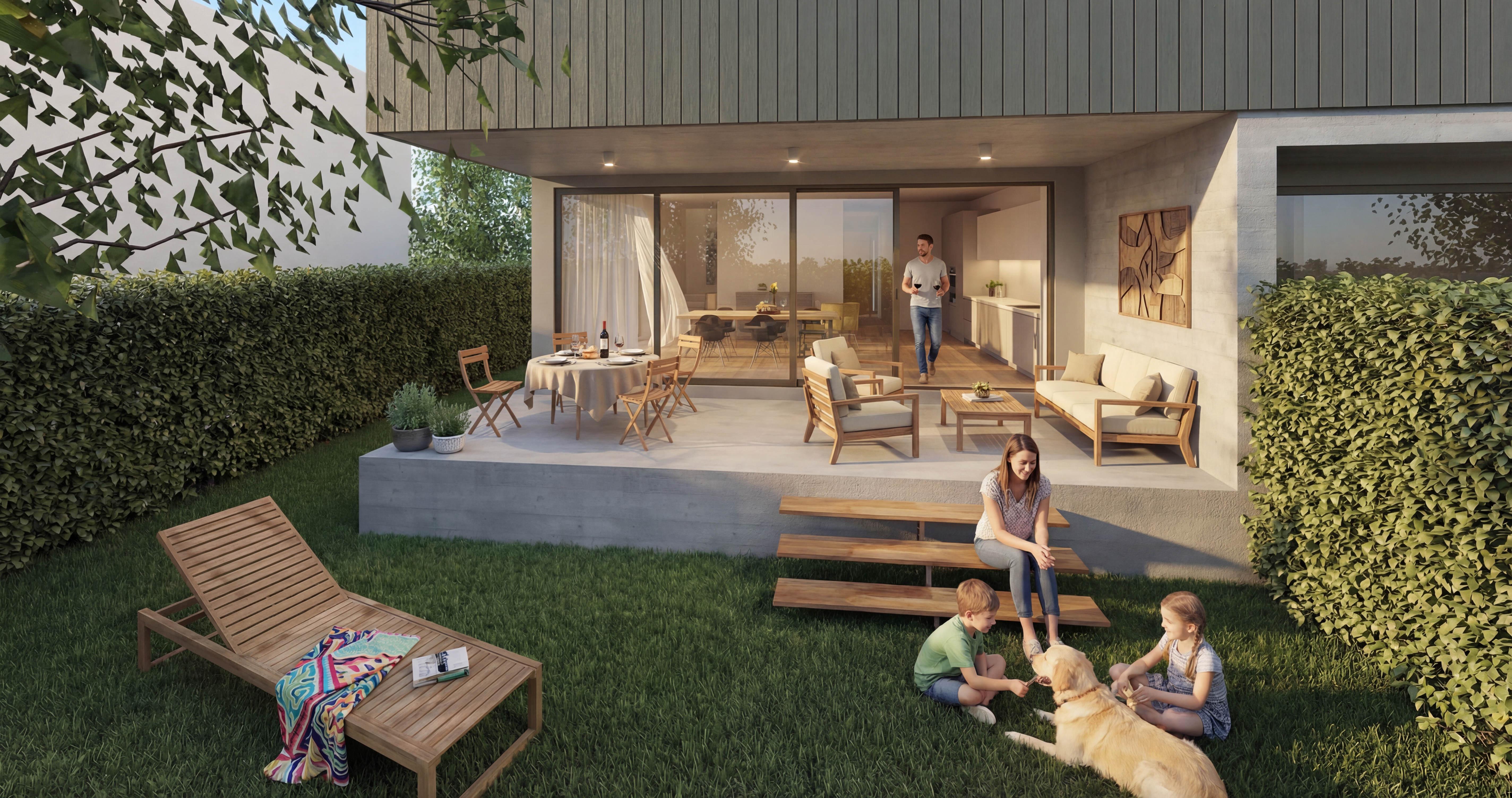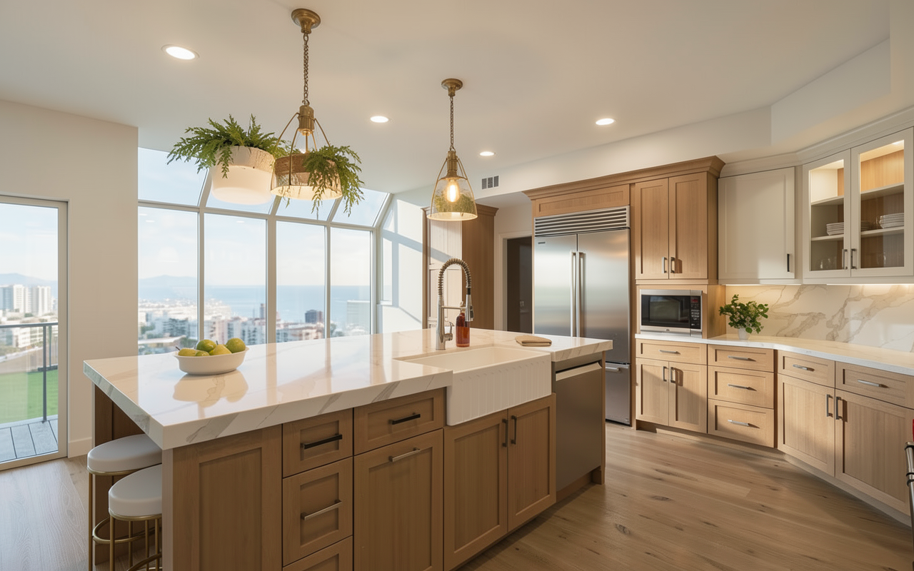 modern farm house bungalow blue sky driveway with suv in it all windows and door trim should be black add driveway paved with black asphalt add a walkway from the front door porch to the driveway
