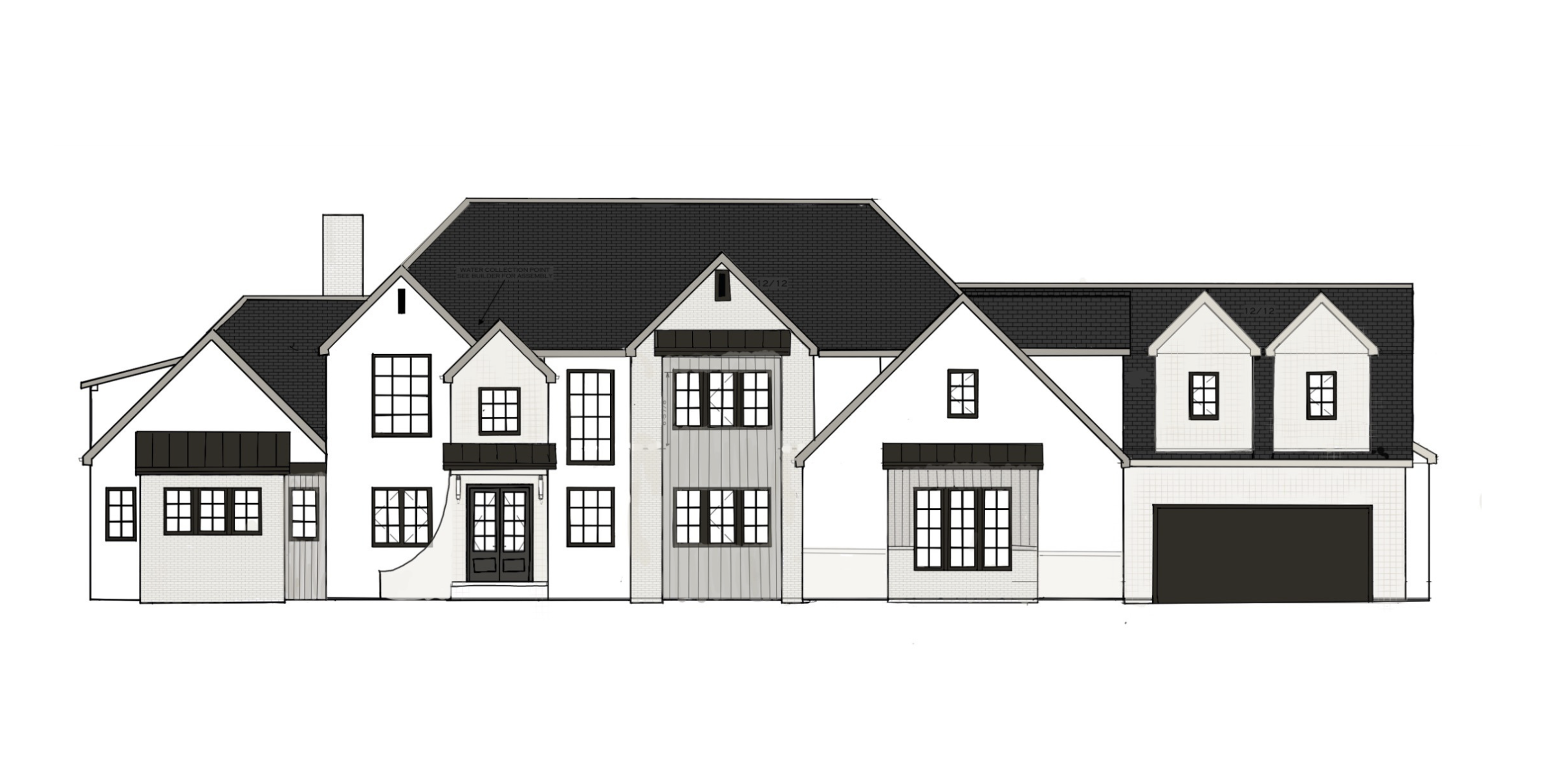 can you recreate this into a beautiful realistic photograph the creamy part is a white washed brick the vertical is a light wood siding the white is a creamy stucco the facia is cream the roof is a medium brown make it light and airy keep the structure the exact same as the rendering