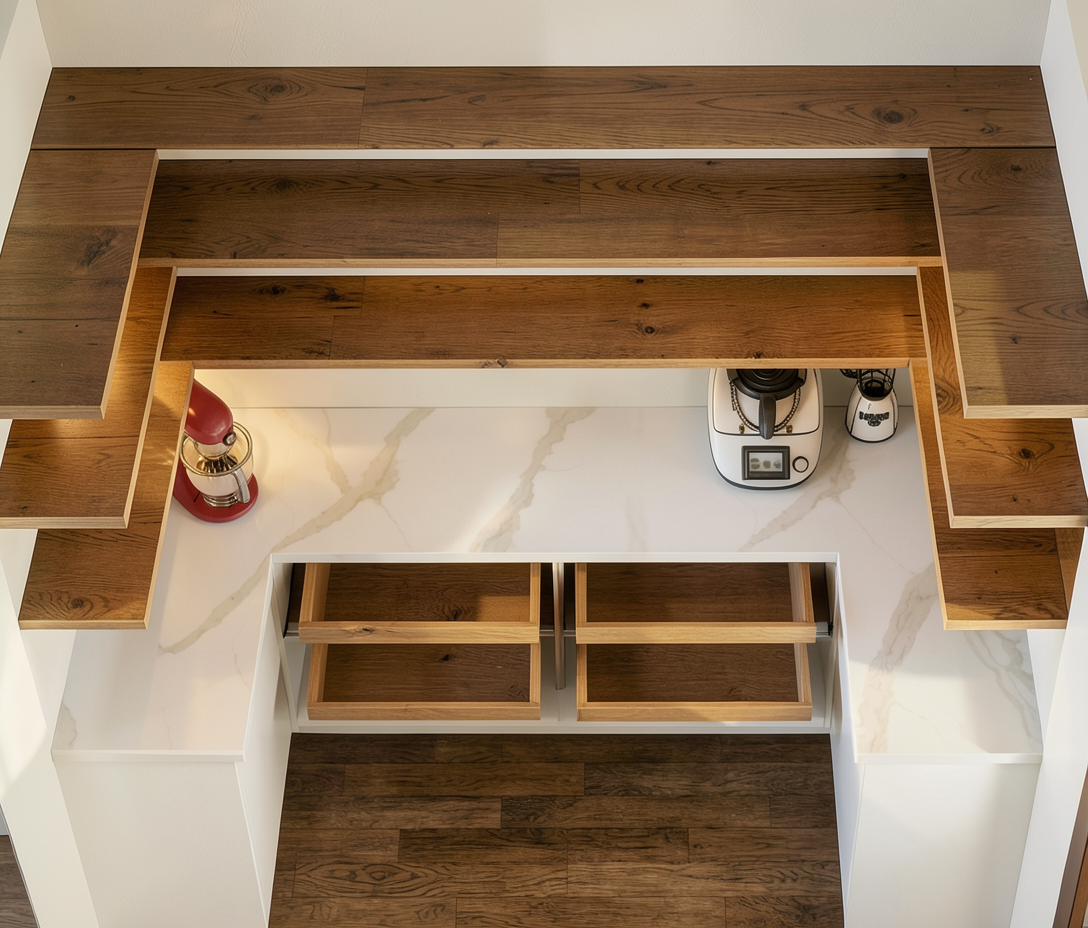 the drawers are pull out drawers the shelves are oak wood