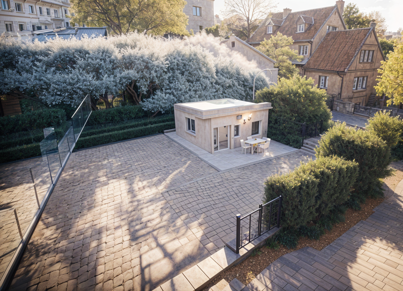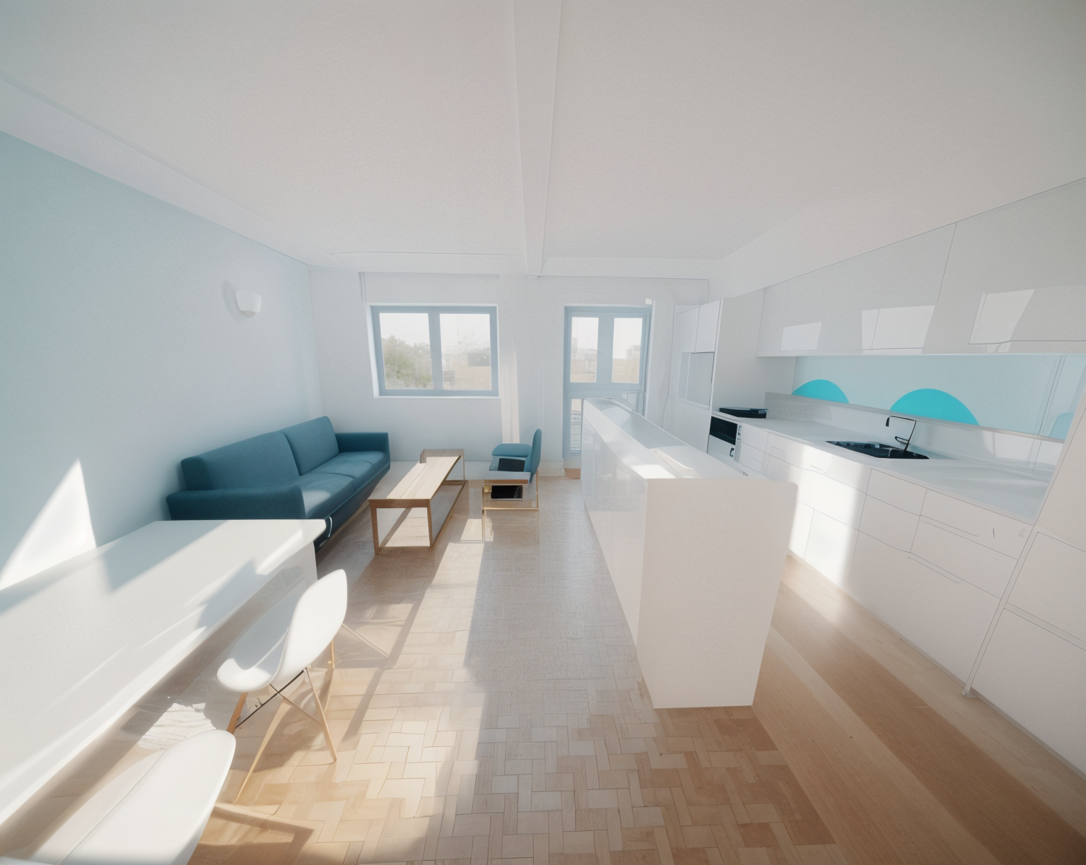 exterior shot create a lifelike photo based on the architectural blueprint and the materials provided do not change anything structurally