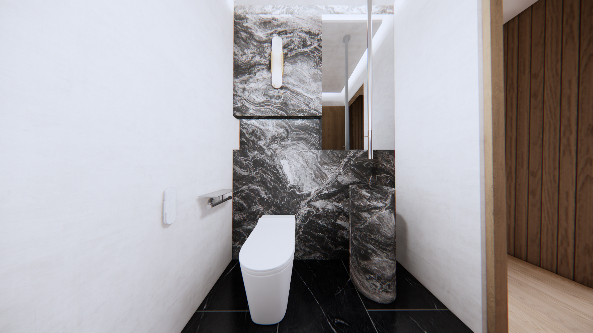 turn on lights in the toilet add tall hedge behind the window