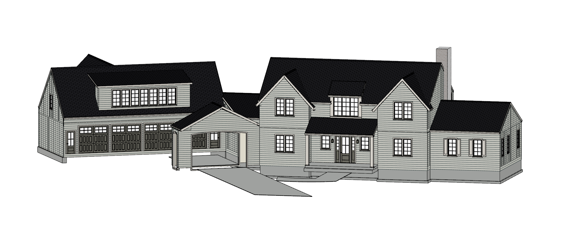exterior shot exterior shot photorealistic rendering of a modern tudor style home and 4 car garage with tan stone black windows charcoal colored roof oak wood front door oak wood timber corbels keep the size layout scale and structure place in a wooded setting with lots of trees