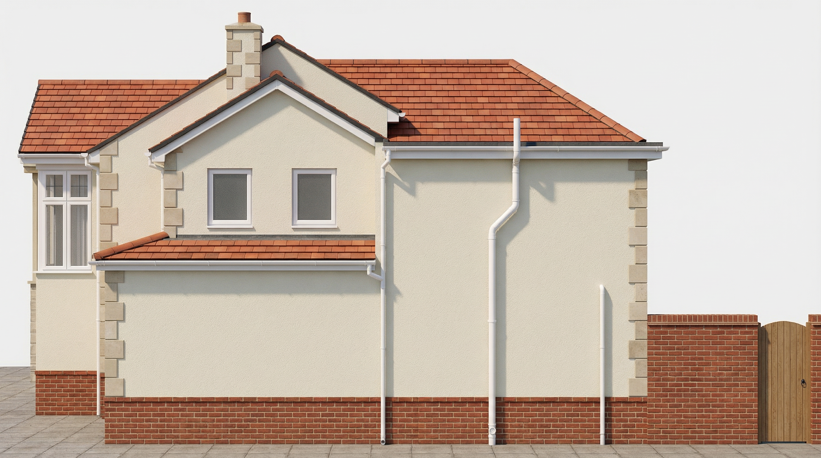 modernist exterior shot add more landscaping features and patio furniture and add metal trim to the top of extension wall architecture