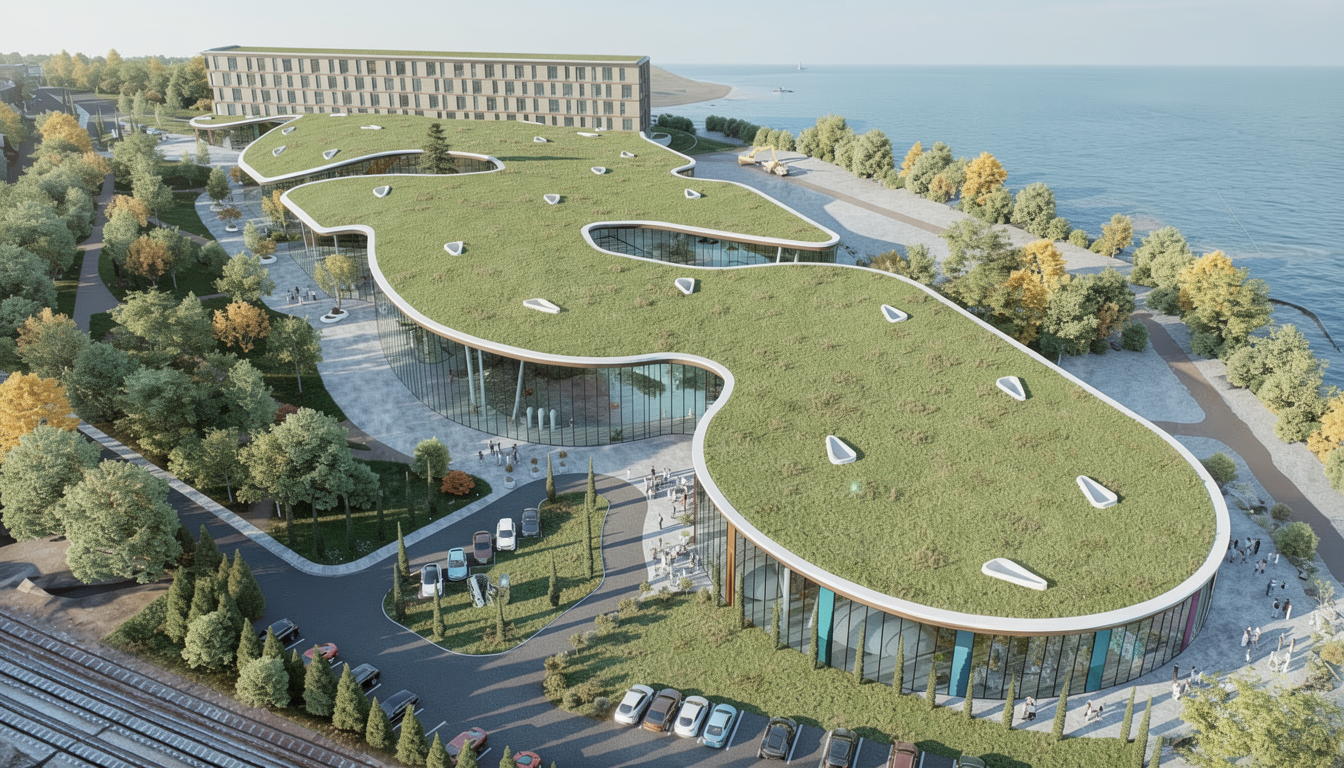 white stucco walls black flat roof tiles travertine patio modern wall mounted lighting soffit lights white aluminum property fence a bed behind glass sliding doors white gutters and downspouts manicured lawn layered calusa and tropical plants bougainvillea paver pathway leading to the entrance hoa neighborhood context sunset