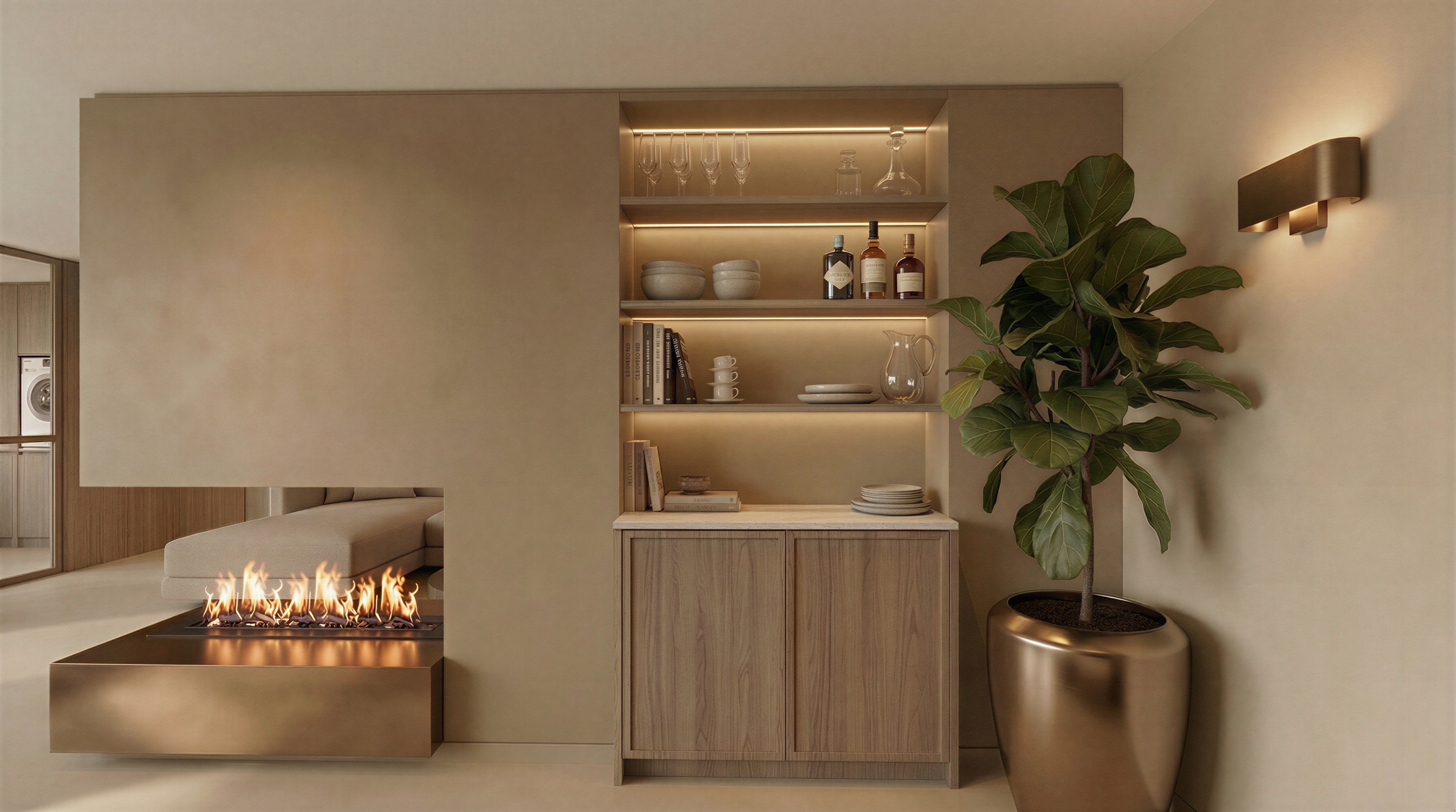 architectural visualization subtle fine graphite and ink sketch lines overlay tracing existing contours outlines of all structural elements furniture fixtures textures wood concrete glass of the scene delicate schematic detail layer precise contour work hand drawn character without distorting the rendering maintaining original lighting colors materials and details intricate detailing professional architectural drawing overlay high definition rendering 8k resolution photorealistic scene base with elegant sketch refinement