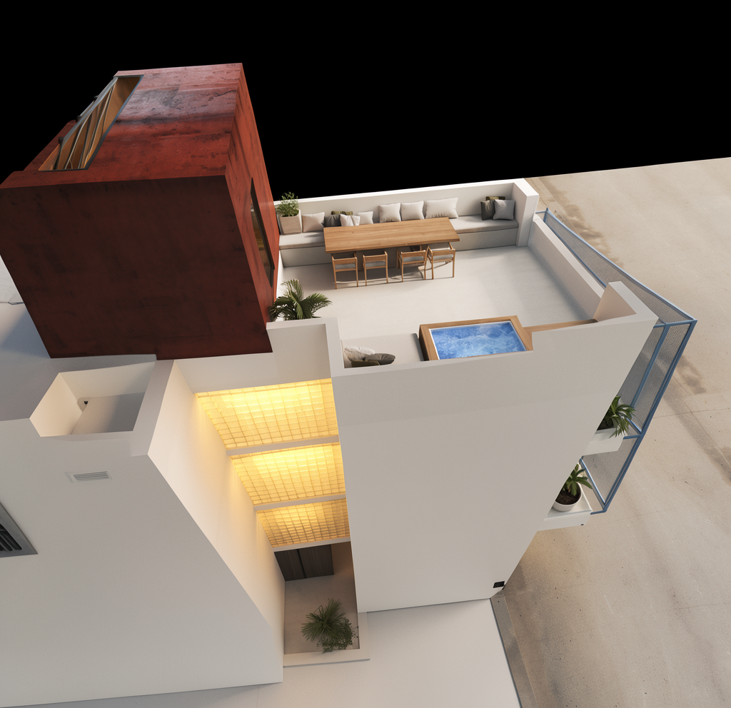 rotate slighlt so i have better view of the roof with the table and the pool but dont lose geometry and perspective