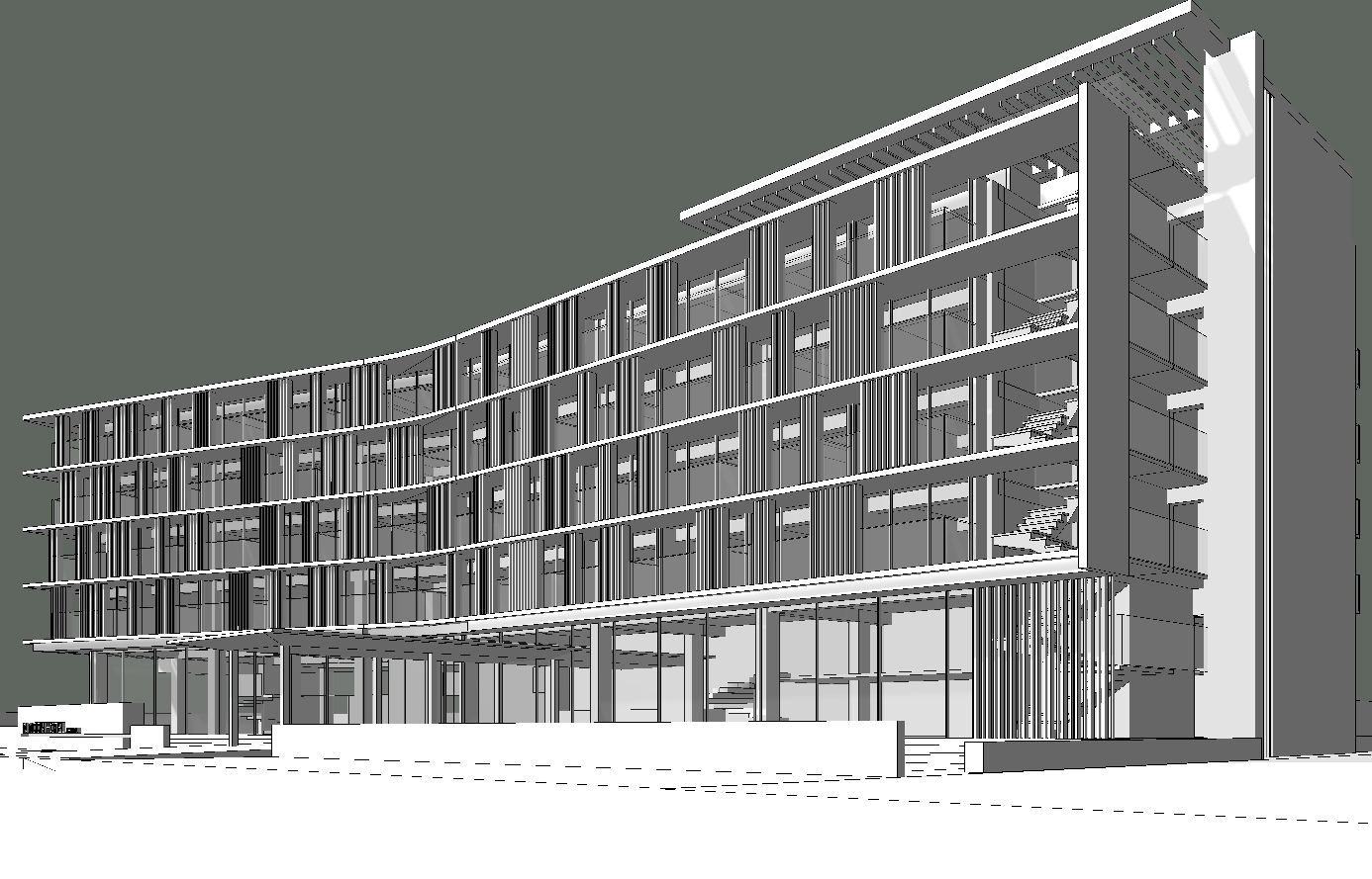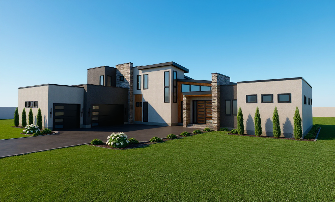 zaha hadid exterior shot a modern sleek building with a smooth white facade and large glass windows reflecting the sky the structure is accented with horizontal wooden slats in warm oak tones the atmosphere is calm and serene with a clear blue sky above soft sunlight bathes the building creating gentle shadows the surrounding environment is minimalistic with a few green plants for a touch of nature architecture