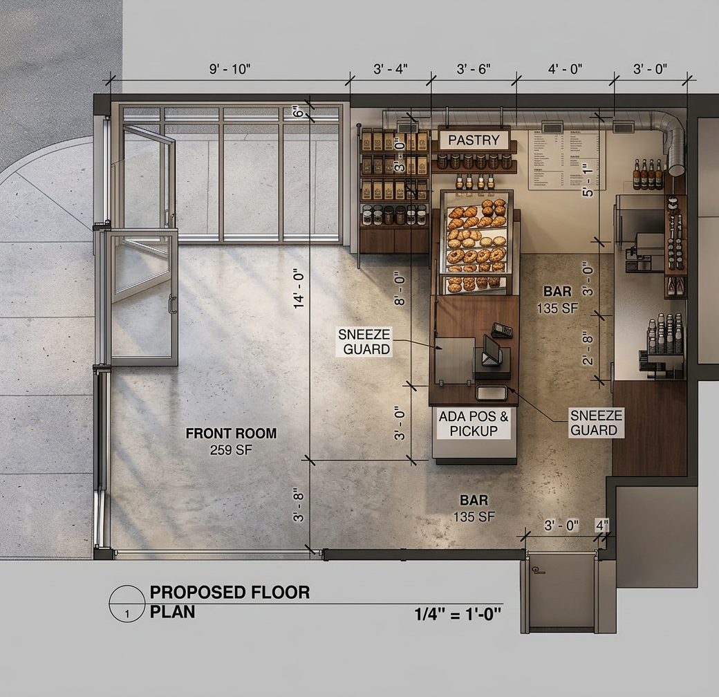 add landscaping between the entry door and the drive thru do not adjust anything else including materials and composition do not adjust the size or layout of the curbs