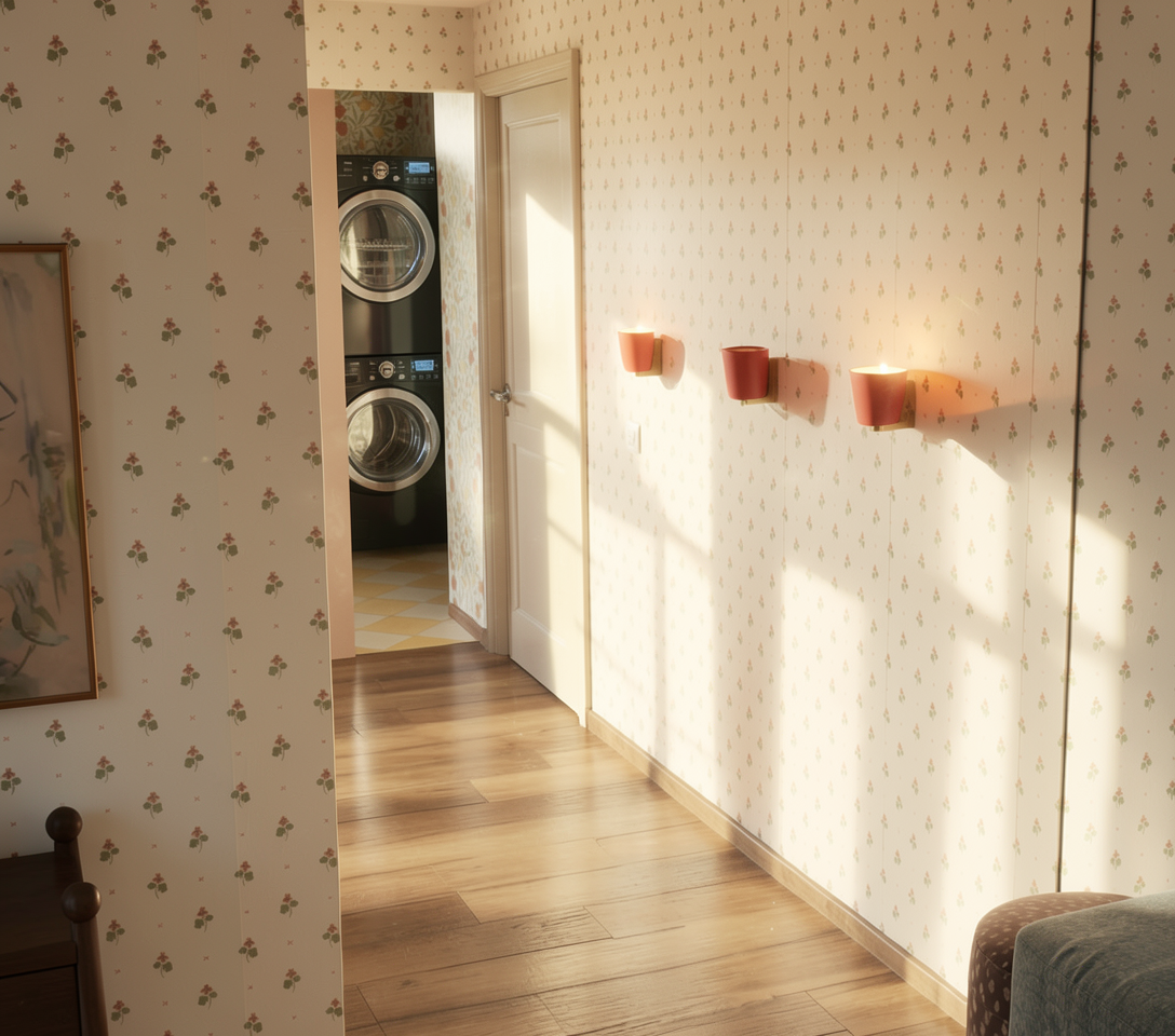 add a modern wallpaper with texture behind and change the disposition of the leaves