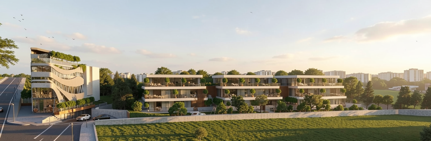 in the background there are small trees and grass