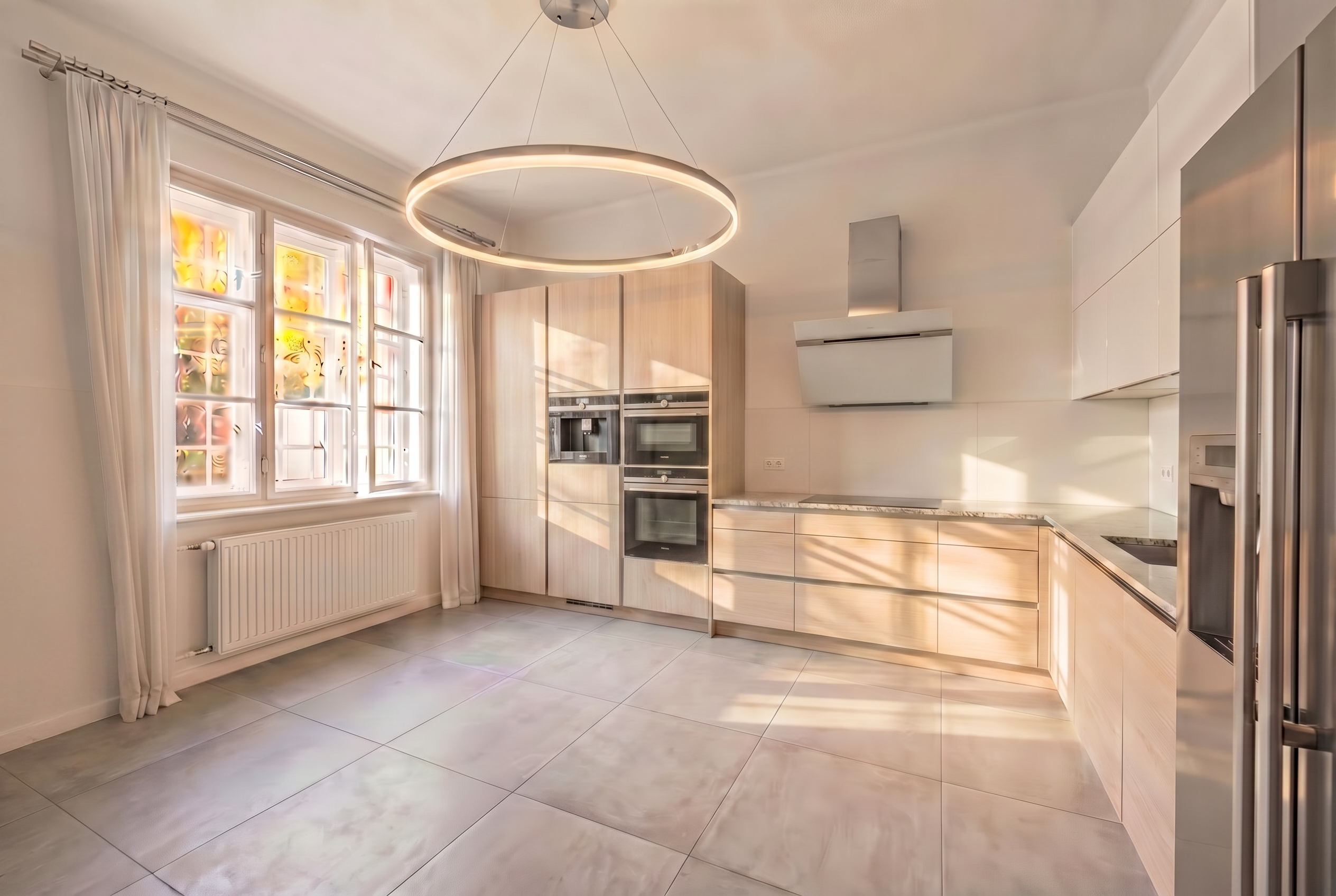 vykresli z clonu vlevo jako p irozen spl vavou p idej modern j deln st l se 6 celo aloun n mi idlemi v barv b l p isunut k oknu a orientovan na st ed okna