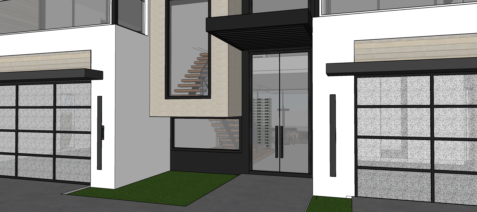 day blue sky with some clouds professional photography shot keep house layout structure and proportions please maintan the perspective image glass garage door opaque