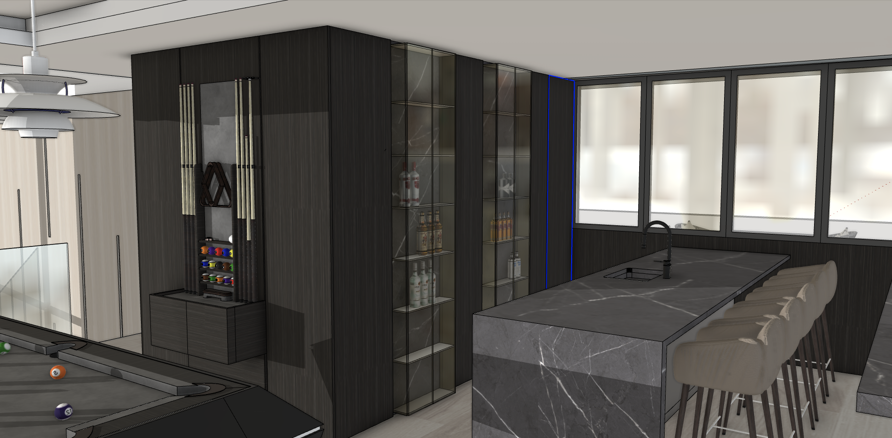 photorealistic interior render of a lounge space on the third floor minimal design with natural oak floors soft diffuse daylight realistic materials and textures high depth of field and cinematic lighting ultra detailed finish