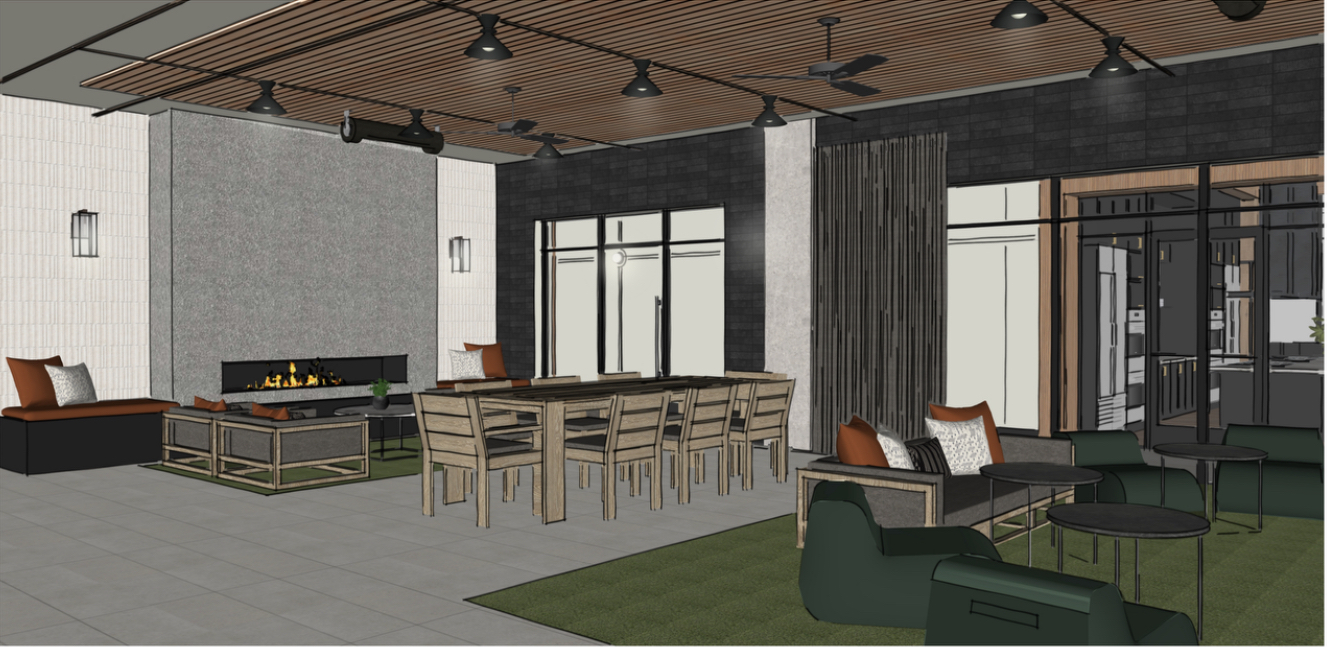 this is a covered outdoor patio show a little bit of overhead lighting