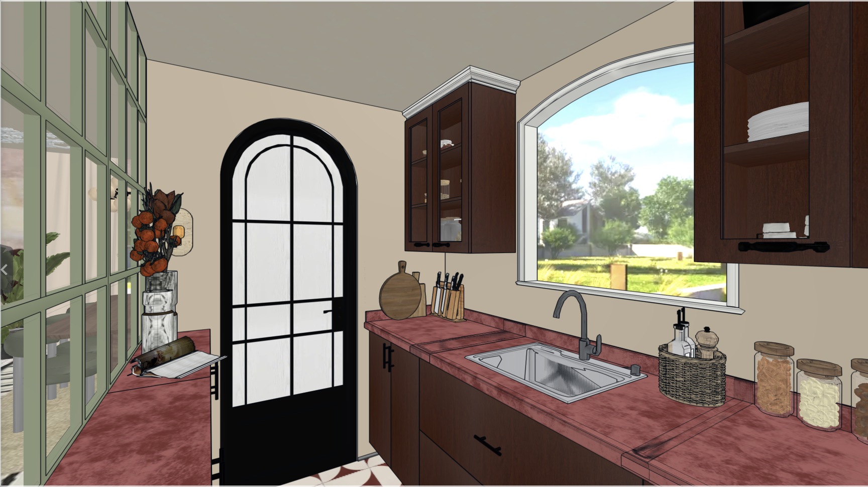 photorealistic luxury kitchen interior bright natural daylight balanced exposure rich dark wood cabinetry curved island with stone countertop continuous under cabinet led strip lighting a single seamless light line under upper cabinets soft warm glow illuminating backsplash only no segmented lighting no individual lights per cabinet no light on island no under lighting on the island controlled lighting realistic light falloff all ceiling lights and wall lighting turned on layered lighting exterior view slightly visible through windows soft natural outdoor lighting not overexposed no harsh glare no additional artificial lighting added global illumination dslr 35mm ultra realistic