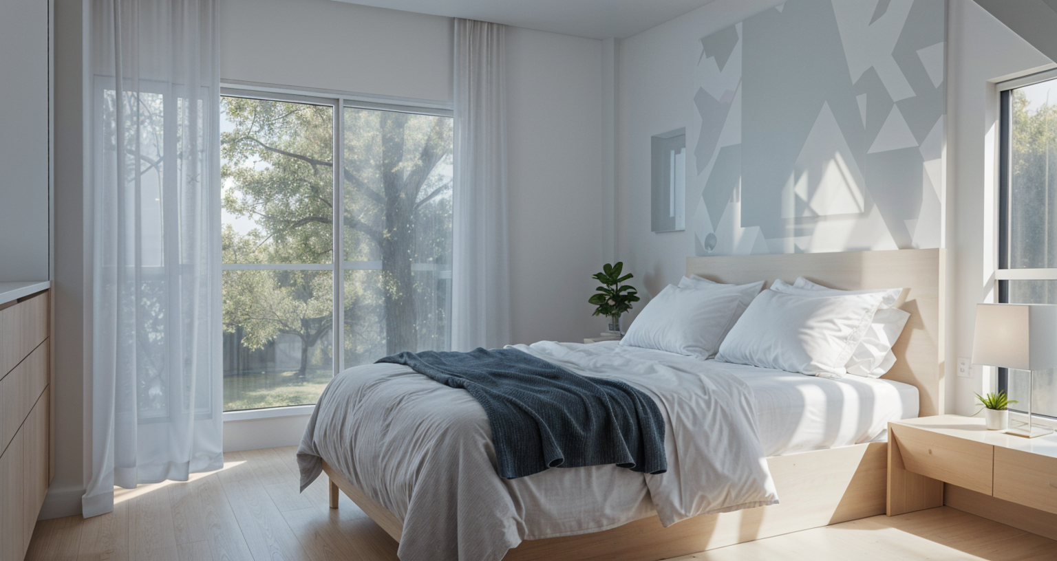 alvar aalto interior shot change the style of this room keep it minimalist with sober colors take the covers off the bed dont chance the backgroud architecture