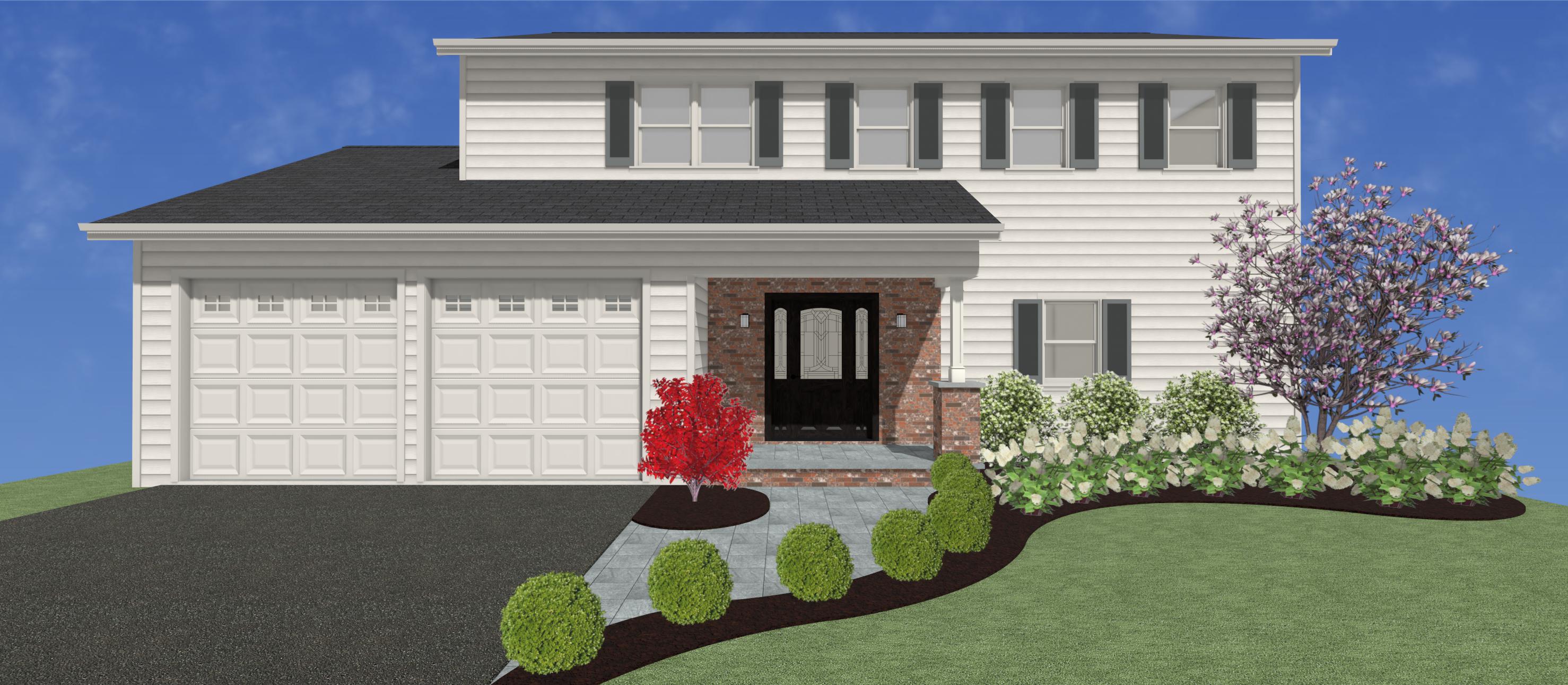 add realism to house with natural lighting and shadows pay attention to the brick pillar and bluestone porch and walkway