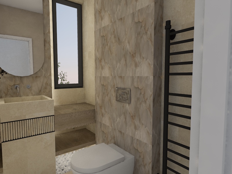 use the upper fog tile from fondovalle for the gypsum behind the sing and on the toilet and the rest walls a beige tile 60x120