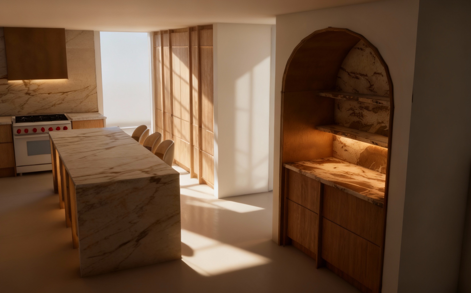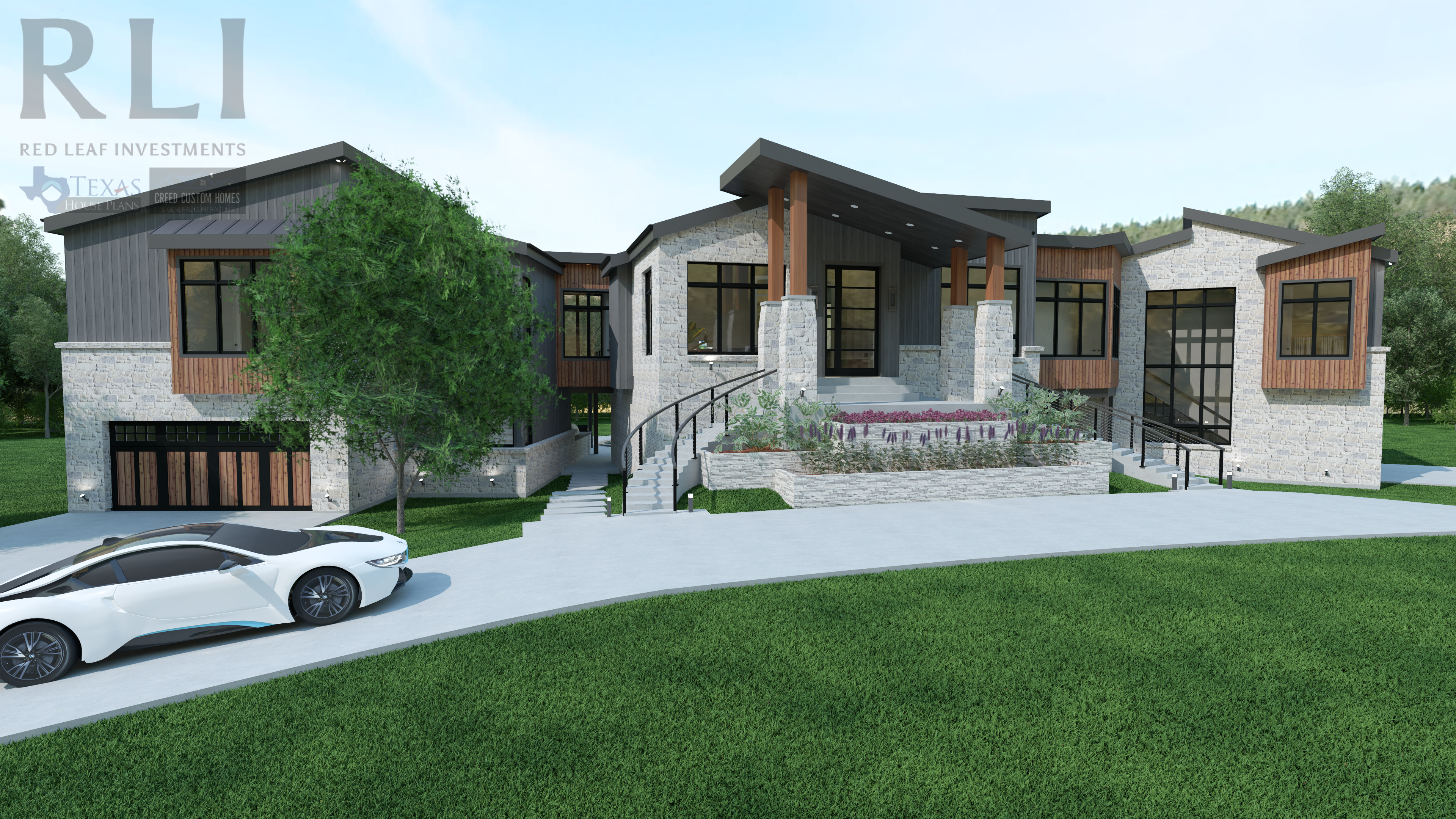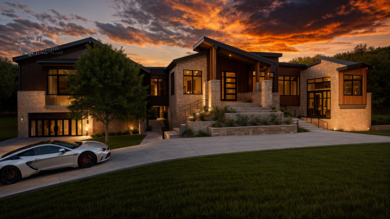 make this house more realistic and add a dramatic cloudy sunset sky in the background remove the logo in the left corner